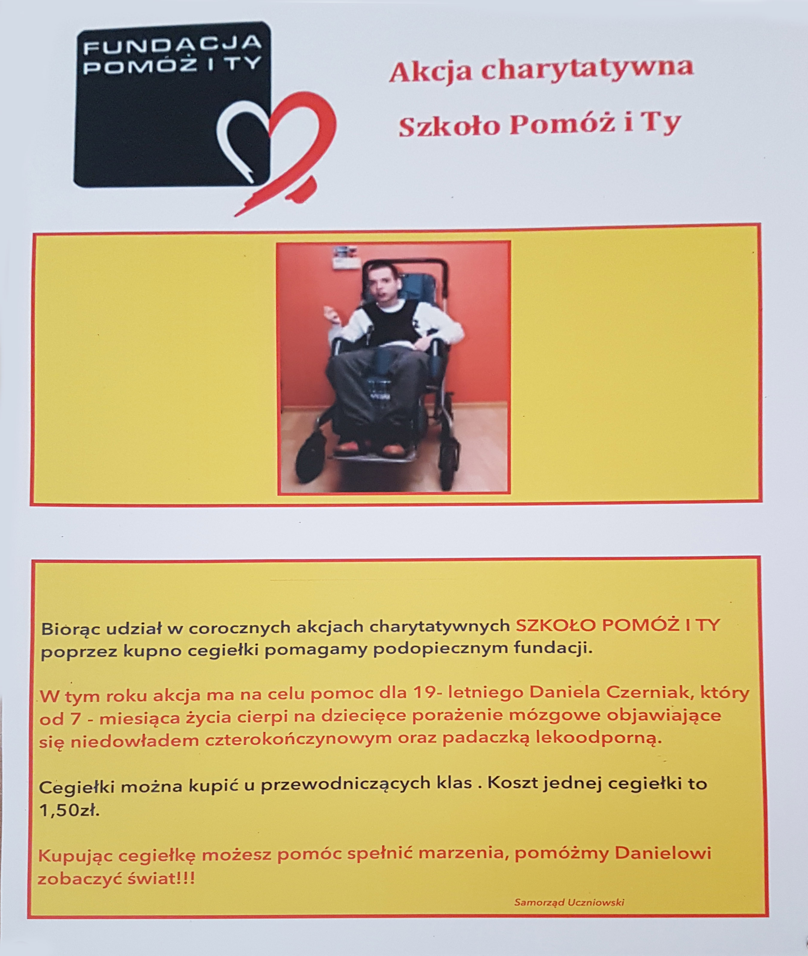 - rozpoczął całoroczną akcję charytatywną „Szkoło pomóż i Ty”