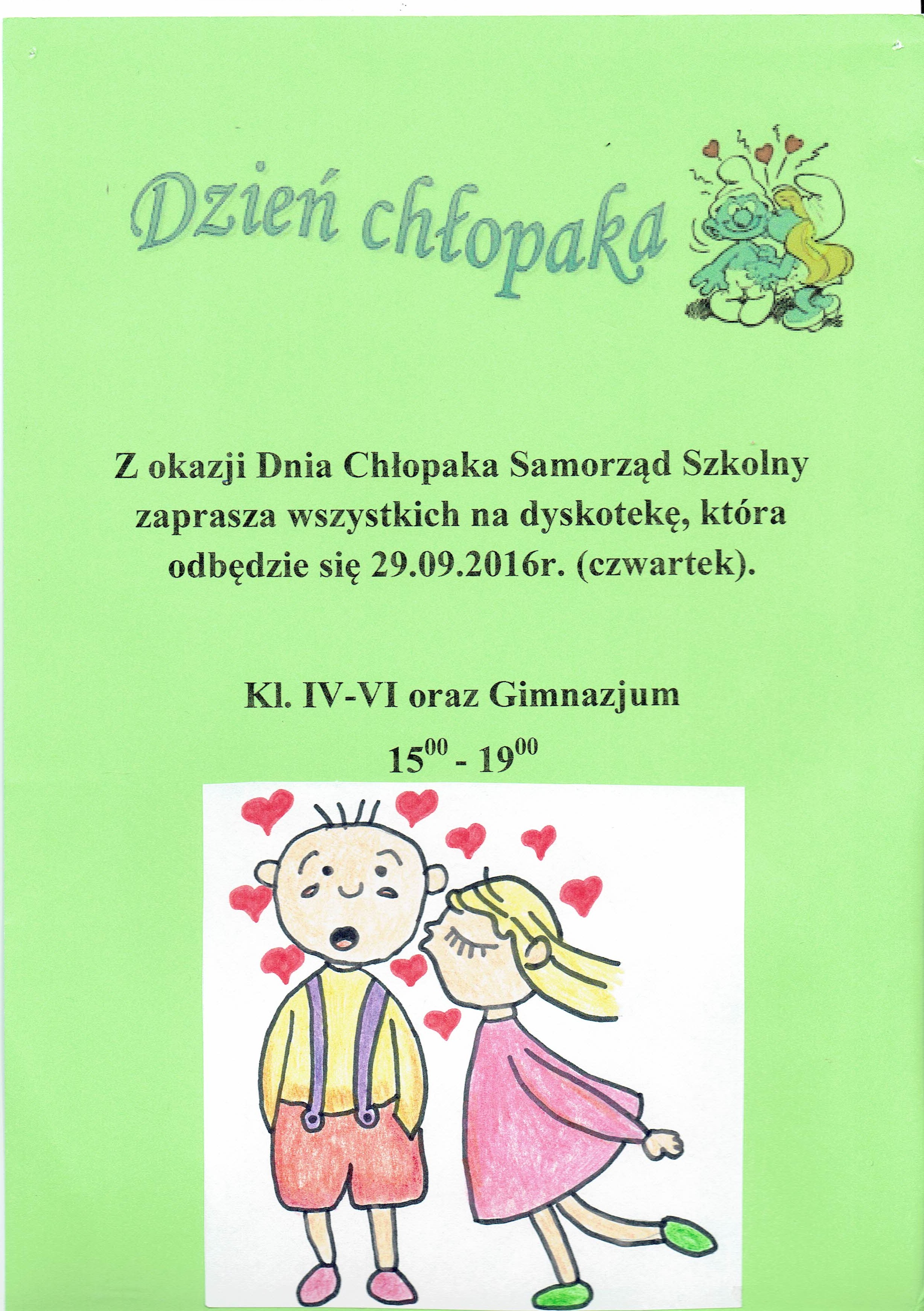 - zorganizował dyskotekę szkolną z okazji Dnia Chłopaka