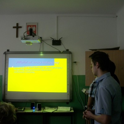 19.06.2015 gimnazjaliści z klasy II przedstawili wyniki swojej pracy nad realizacją zadań w ramach wybranych przez siebie projektów. Uczniowie: Dariusz Kaczmarczyk, Konrad Kowal, Dawid Bubka, Dawid Morajka i Sebastian Rapacz w prezentacji „No promil. No problem – profilaktyka zachowań ryzykownych” przybliżyli swoje działania związane z profilaktyką antyalkoholową.