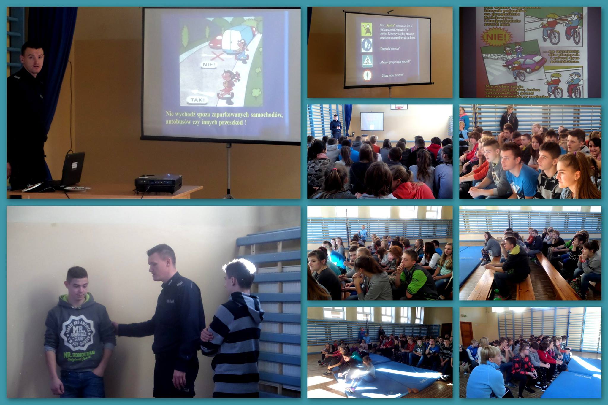 W dniu dzisiejszym nasza szkoła gościła Pana Policjanta sierżanta Kamila Startka – Dzielnicowego naszej Gminy. Na początku rozmawiał on z przedszkolakami, potem z uczniami klas I – III SP i z uczniami klas IV – VI SP, a na końcu z uczniami gimnazjum. Najstarsi uczniowie przypomnieli sobie zasady bezpiecznego poruszania się po drodze. Wysłuchali wykładu na temat cyberprzemocy, dopalaczy i narkotyków.