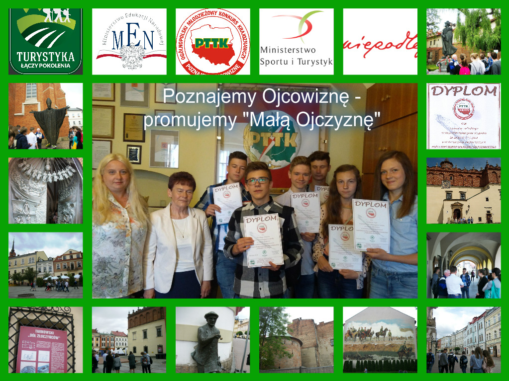 Sześcioosobowa grupa uczniów z kl. II Gim. prezentowała efekty swojej pracy w tarnowskiej siedzibie PTTK. Zaproszeni nauczyciele oraz uczniowie mogli zobaczyć niektóre nagrodzone prace o wysokim poziomie merytorycznym i oryginalnej szacie graficznej. Następnie laureaci konkursu wraz z opiekunami pod opieką przewodnika zwiedzali piękne, małopolskie miasto Tarnów, m.in. miejsca pamięci, zabytki architektury, itd..