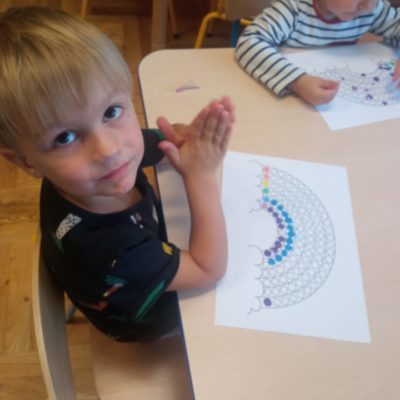 15 września obchodziliśmy Międzynarodowy Dzień Kropki, który był doskonałą okazją do rozbudzania u dzieci kreatywności i pomysłowości. Oglądaliśmy bajkę „The Dot”, w której została opowiedziana historia małej Vashitii. W nawiązaniu do filmu samodzielnie stworzyliśmy piękne prace plastyczne.