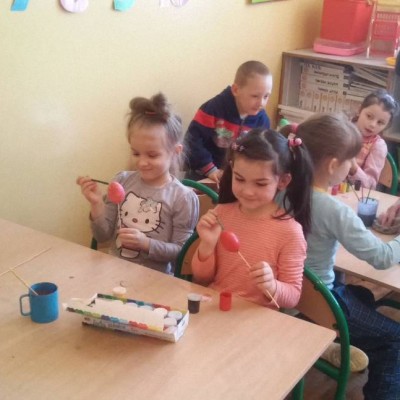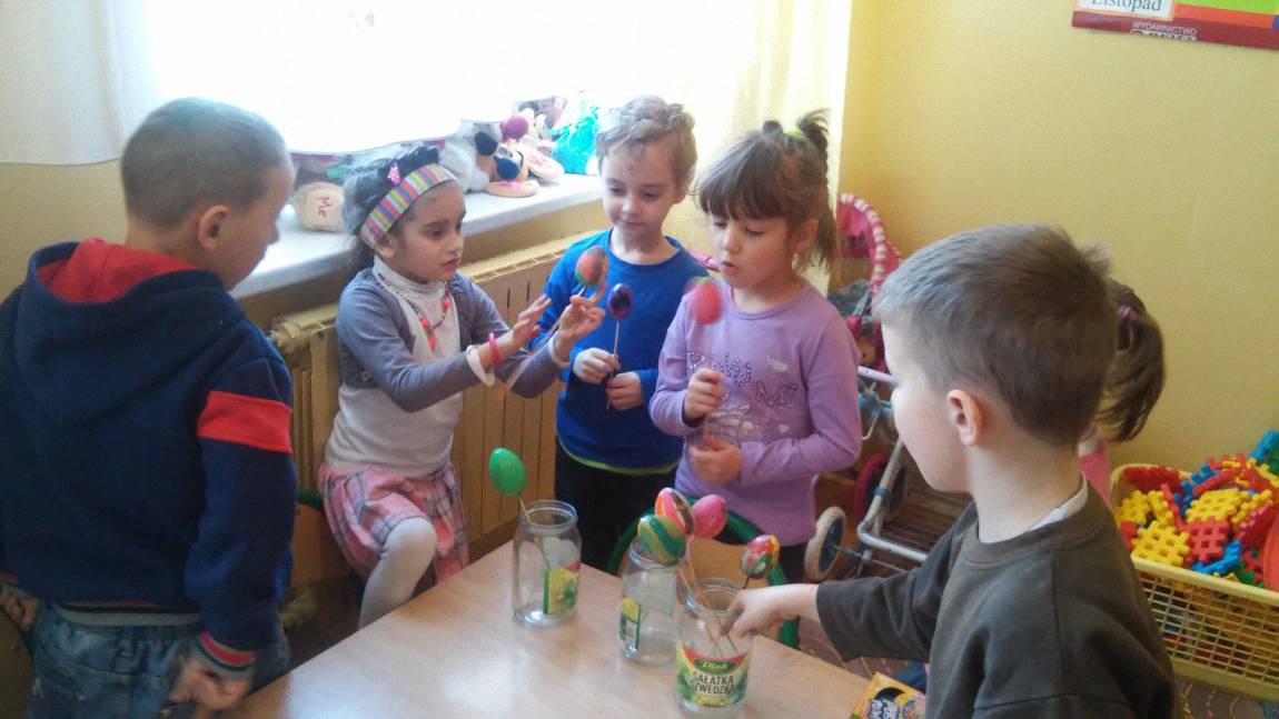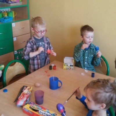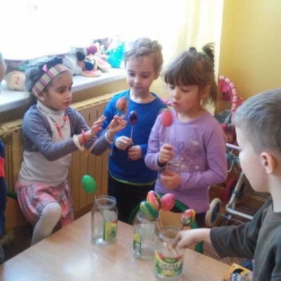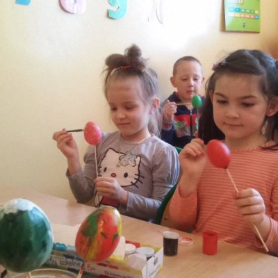 Krasnoludki jak co roku szykują się do Świąt Wielkanocnych. Prócz kartek świątecznych, malowania jajek ze styropianu farbami, ozdabiały styropianowe jajka kolorowymi i różnokształtnymi cekinami. A ile miały przy tym zabawy i radości…
