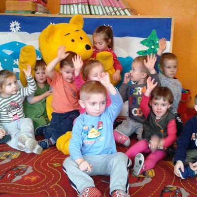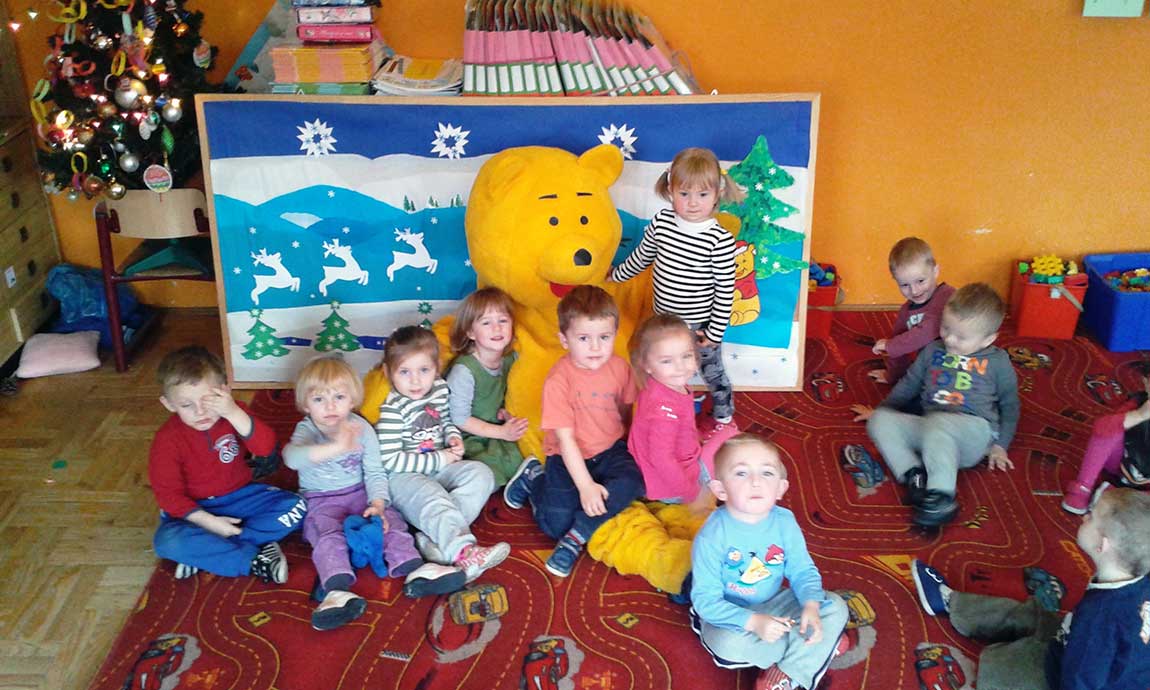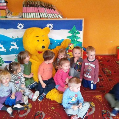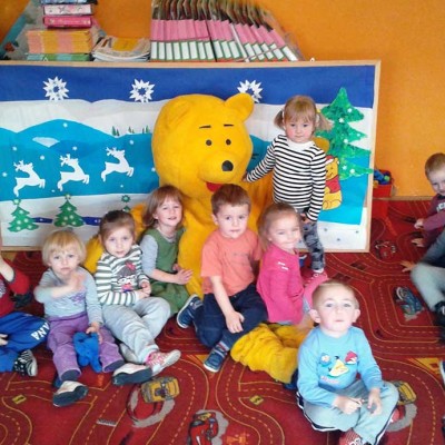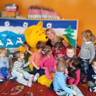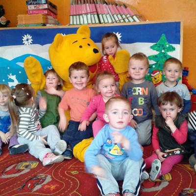 Dzieci z wielką radością uczestniczyły w zabawie i sesji fotograficznej z „Kubusiem Puchatkiem”. Warto było uwiecznić, te chwile niezapomnianych wrażeń.