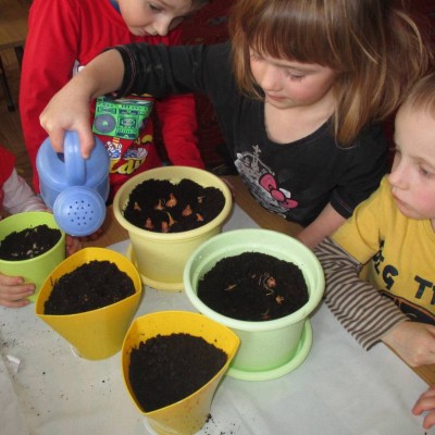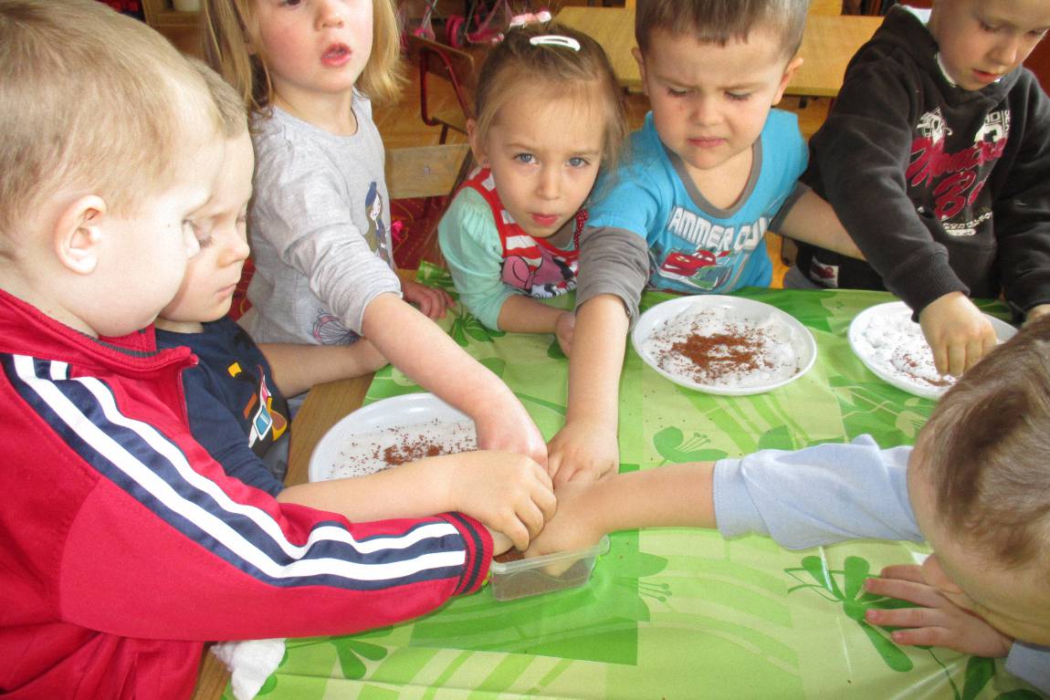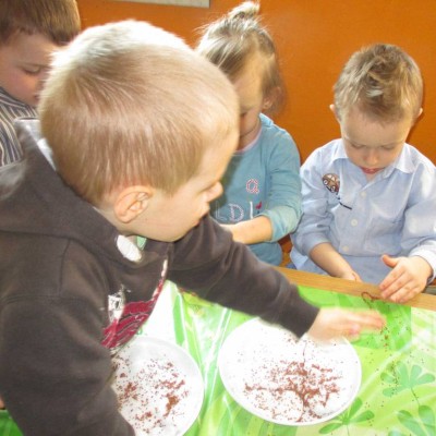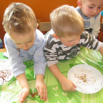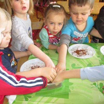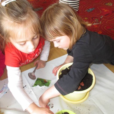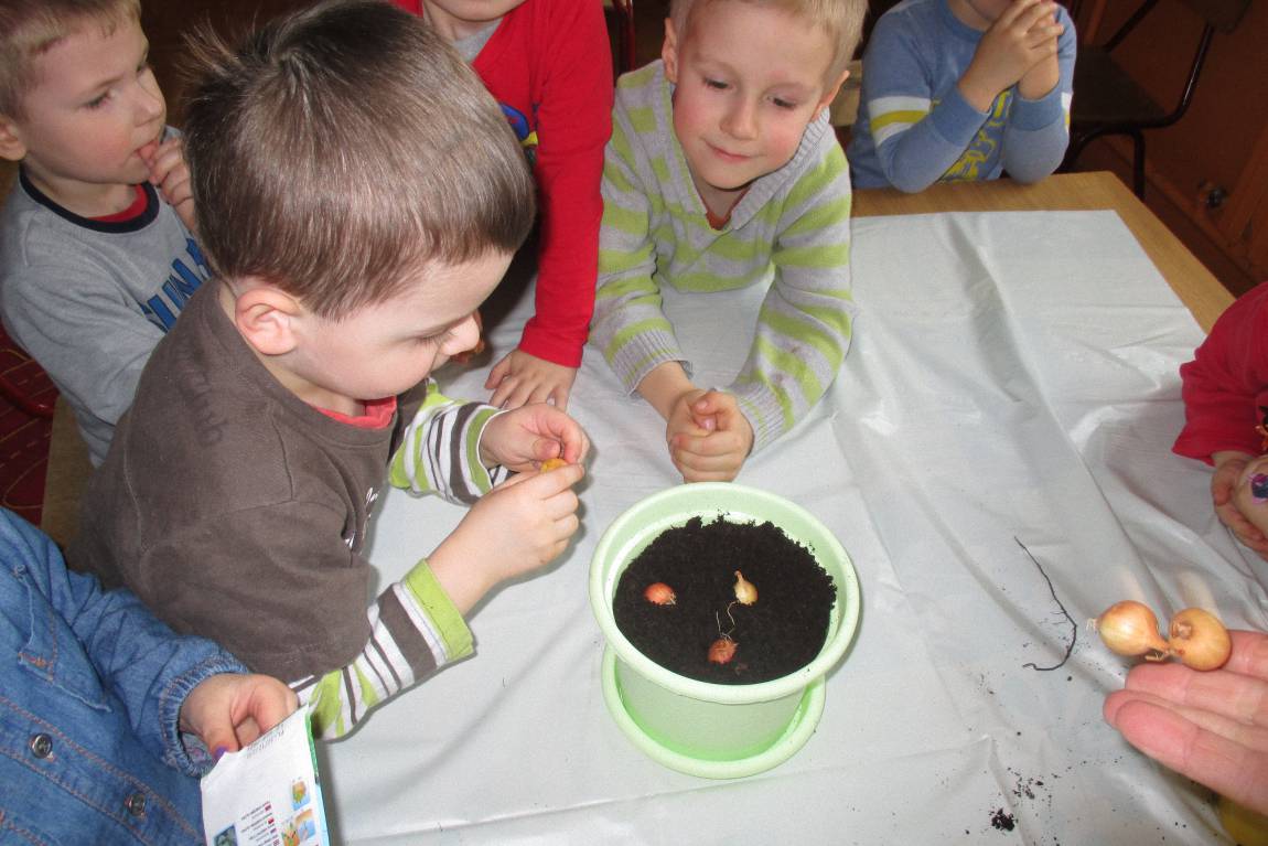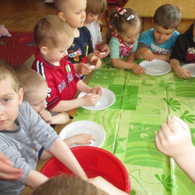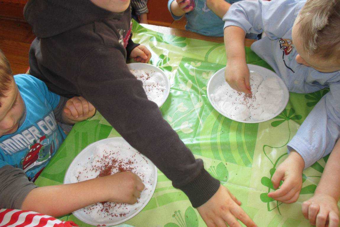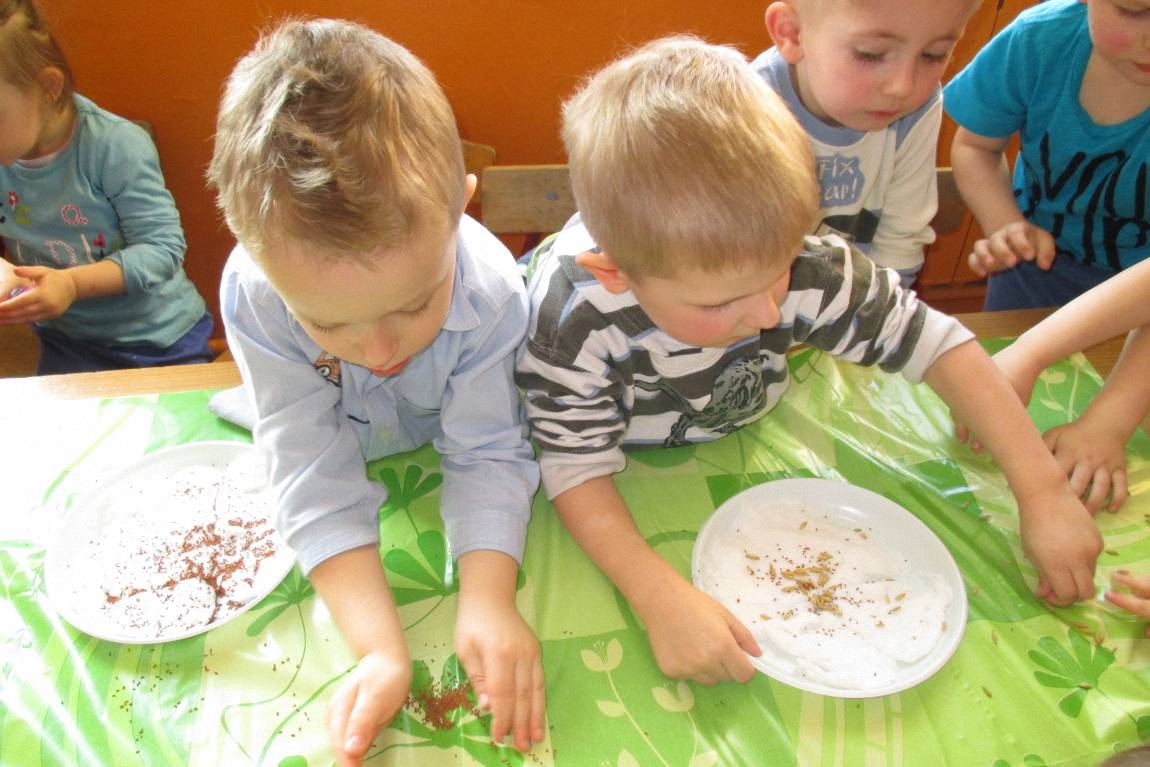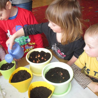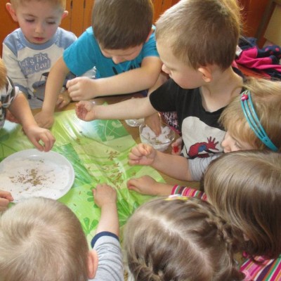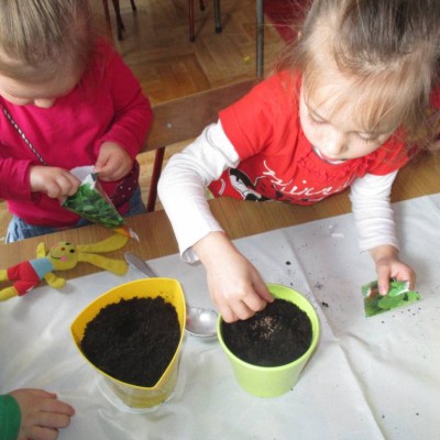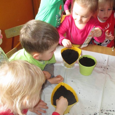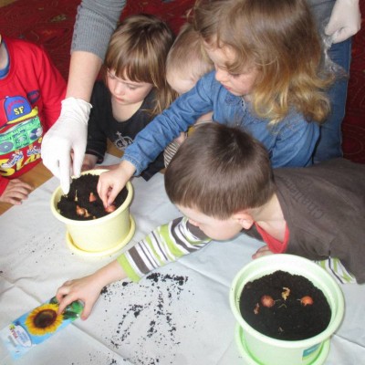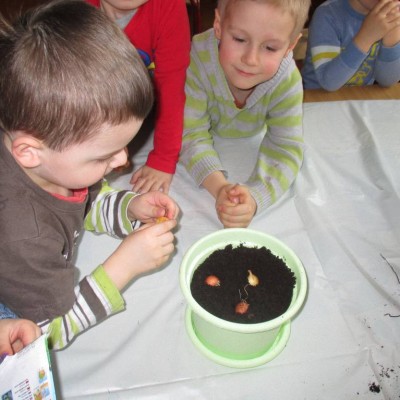 „Pszczółki” witają wiosnę w każdym niemal dniu pobytu w przedszkolu. Dziś wspólnie z wychowawczynią dzieci założyły zielony ogródek na parapecie okiennym. W przygotowanych kolorowych doniczkach posadziły nasionka rukoli, bazylii, majeranku, tymianku, pietruszki naciowej, nasionka słonecznika oraz cebulkę – dymkę. Na wielkanocny stół zamierzają wyhodować ozdobny owiesek i pachnącą rzeżuchę. Wszystkie te roślinki kochają słońce i dobrze znoszą warunki panujące w mieszkaniu, dlatego też dzieci mają nadzieję, że niebawem będą mogły oglądać, a także czuć zapach tych „zielonych gości” w przedszkolnej sali.