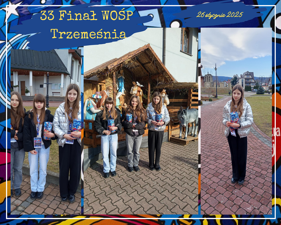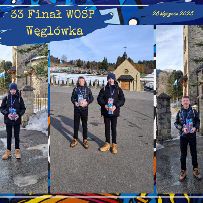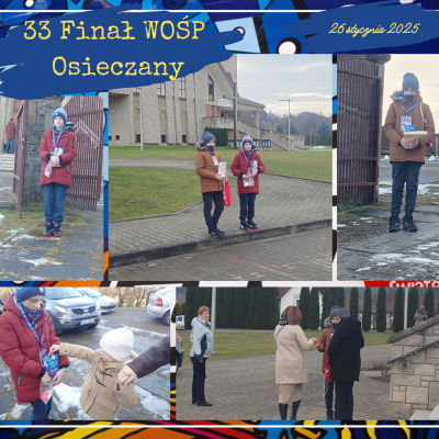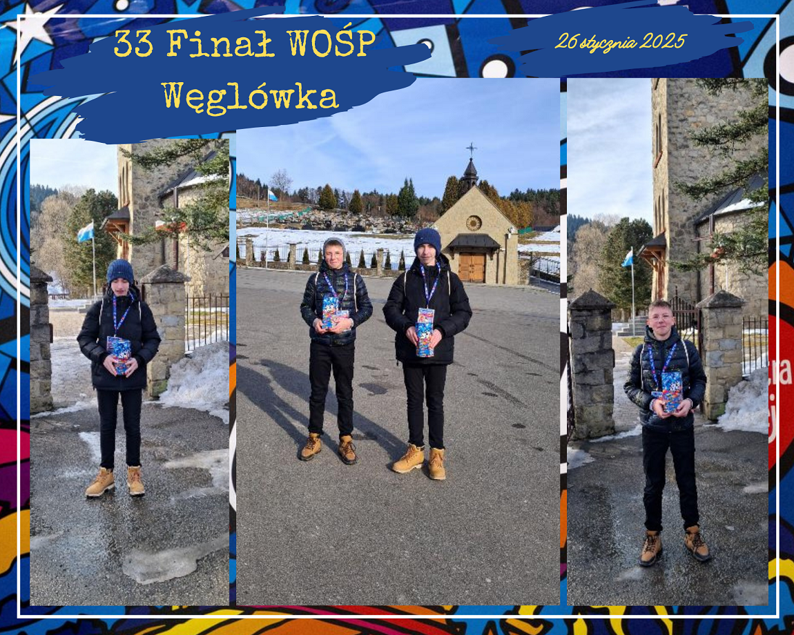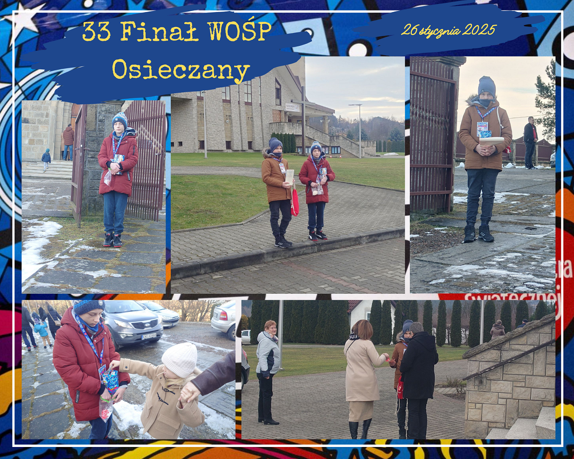 W dniu 26 stycznia 2025r. dziesięciu uczniów naszej szkoły i jeden absolwent było wolontariuszami Wielkiej Orkiestry Świątecznej Pomocy. Od wczesnych godzin porannych uczniowie: Emilia Flaga z kl. 6, Klaudia Lenart z kl. 7b, Kinga Tokarz z kl. 7a, Michał Florek z kl. 7a, Jakub Irzyk z kl. 7a, Mikołaj Nalepa z kl. 7a, Szymon Murzyn z kl. 7a, Karolina Zielińska z kl. 8, Gabriela Bajer z kl. 8, Gabriela Lenart z kl. 8 i Filip Kucała zbierali pieniądze przy kościołach w Lipniku, Wiśniowej, Węglówce, Trzemeśni, Porębie, Osieczanach i Drogini. Po południu, w sztabie w Myślenickim Domu Kultury i Sportu p. Barbara Kirzeniewska i p. Urszula Kucała liczyły pieniądze zbierane przez wolontariuszy z powiatu myślenickiego. Dla naszych uczniów była to bardzo pracowita niedziela. W tym roku WOŚP zbierała środki  dla onkologii i hematologii dziecięcej. Hasło 33. Finału to „Gramy na zdrowie!”.