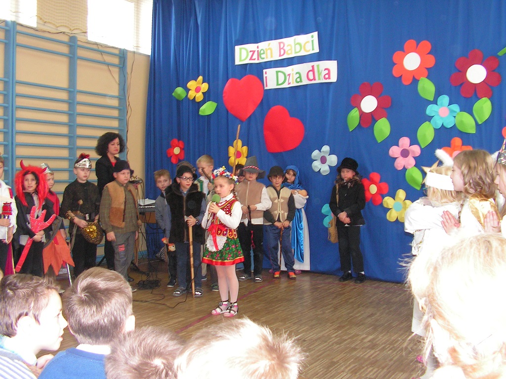 Dzień Babci i Dziadka to niezwykłe święto, pełne uśmiechu i radości. Babcia i Dziadek to ważne osoby w życiu każdego dziecka, dlatego w tym szczególnym dniu tj. 4.02. dzieci z klas I- III również pamiętały o swoich Babciach i Dziadkach i każda klasa ze swoimi wychowawcami przygotowała dla nich część artystyczną. Po części artystycznej dzieci wręczyły swoim Babciom i Dziadkom własnoręcznie wykonane bukiety kwiatów oraz serduszka z życzeniami.