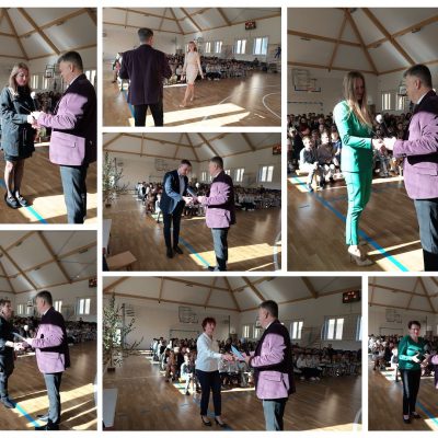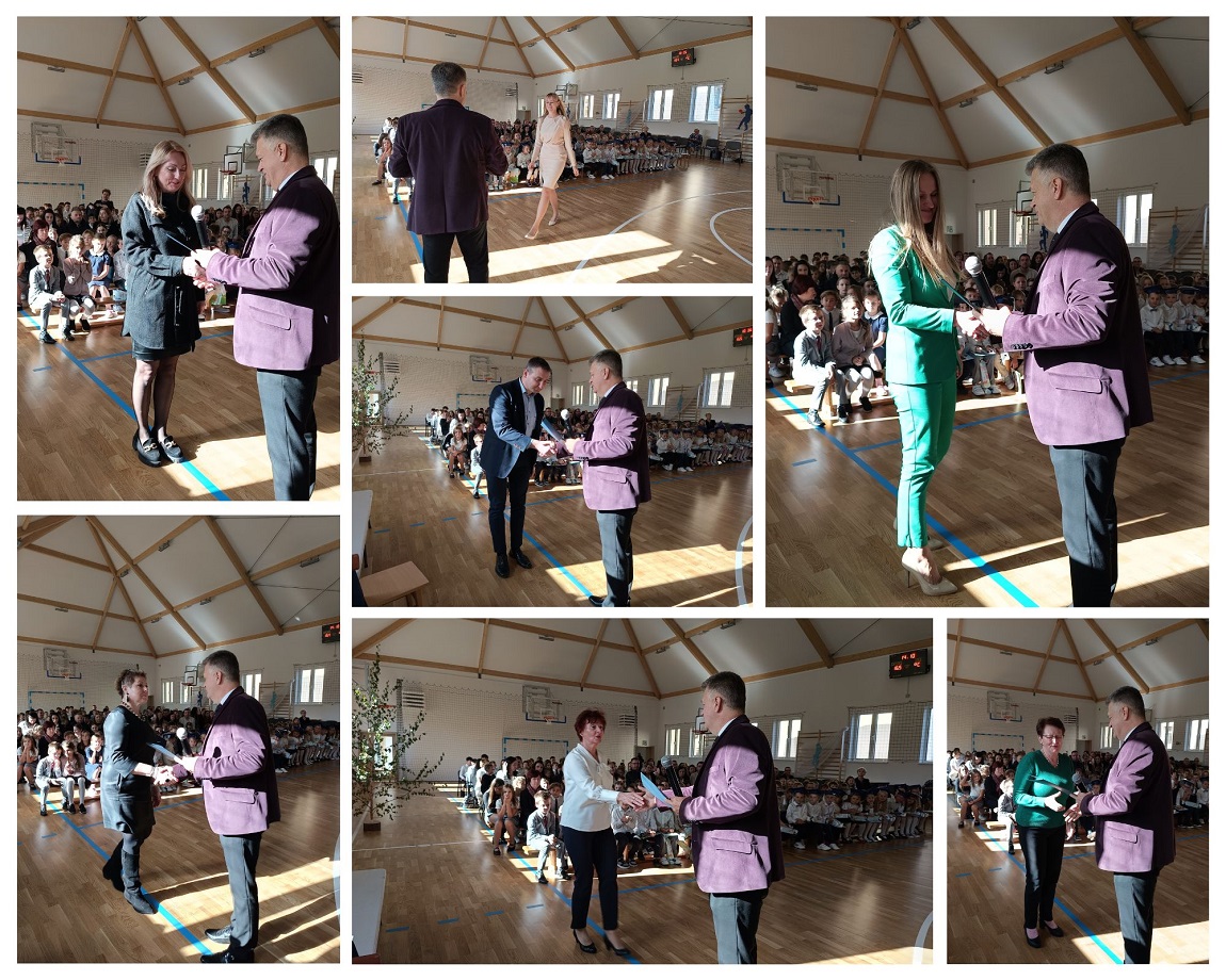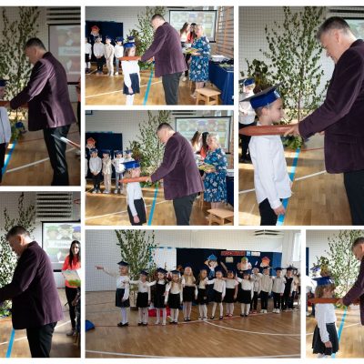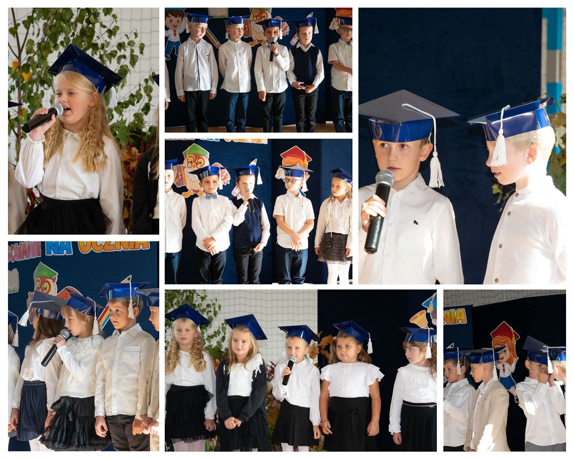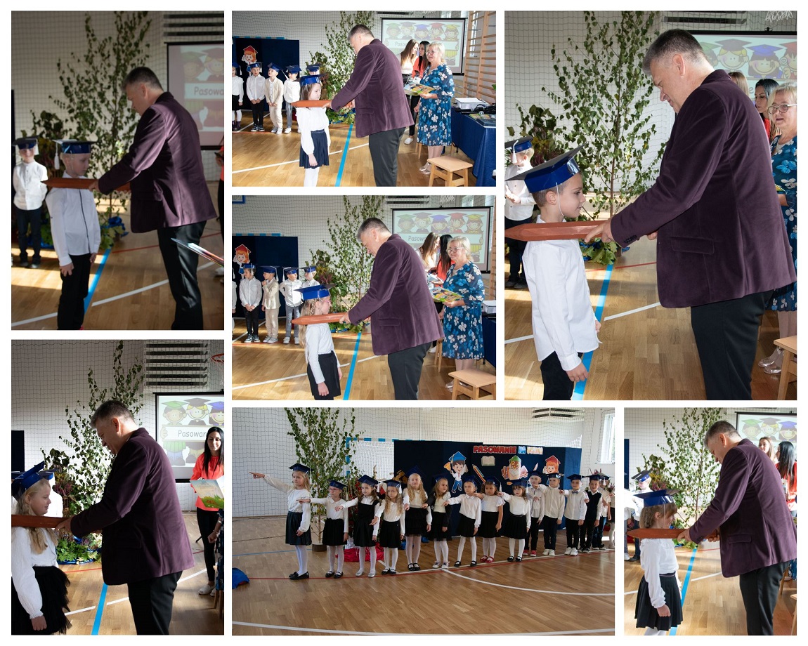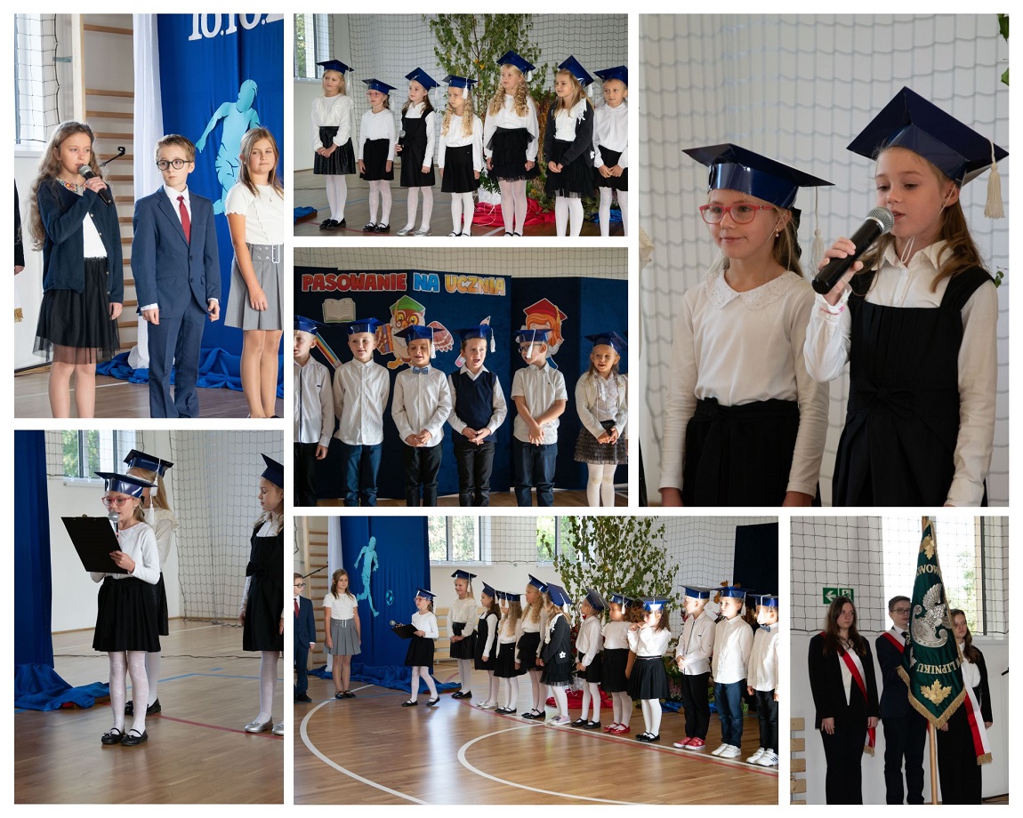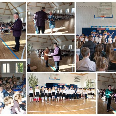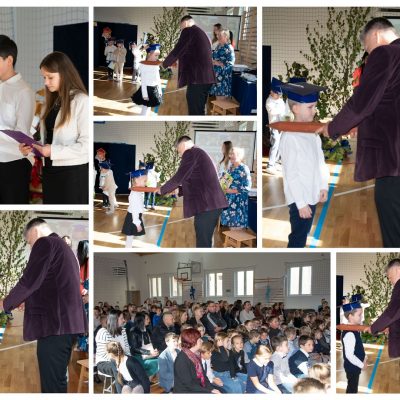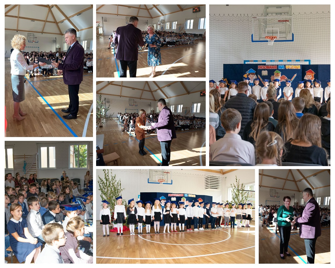 W dniu 14 października 2024r. odbyło się uroczyste ślubowanie uczniów klasy pierwszej. Ten ważny moment został poprzedzony występem, podczas którego pierwszoklasiści recytowali wiersze i śpiewali piosenki. Następnie w obecności rodziców, nauczycieli i starszych kolegów powtarzali słowa przysięgi do sztandaru szkoły. Pan Dyrektor Arkadiusz Skiba dokonał pasowania każdego pierwszoklasisty i wręczył uczniom pamiątkowe dyplomy. W tym dniu obchodzono również Dzień Komisji Edukacji Narodowej. Pan Dyrektor podziękował wszystkim nauczycielom i pracownikom szkoły za trud nauki, pracy i wychowania. Następnie wręczył Nagrody Dyrektora nauczycielom i pracownikom szkoły oraz Nagrodę Wójta Gminy Wiśniowa, którą otrzymał Pan Janusz Paszcz. Samorząd Uczniowski złożył życzenia dyrekcji, wszystkim nauczycielom i pracownikom szkoły. Po akademii uczniowie klasy pierwszej wraz z wychowawcą udali się do klasy na poczęstunek przygotowany przez rodziców i otrzymali drobne upominki od starszych kolegów z klasy drugiej.