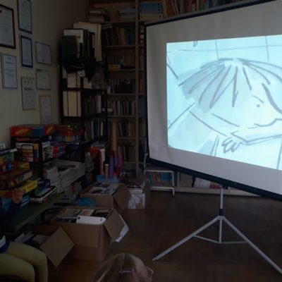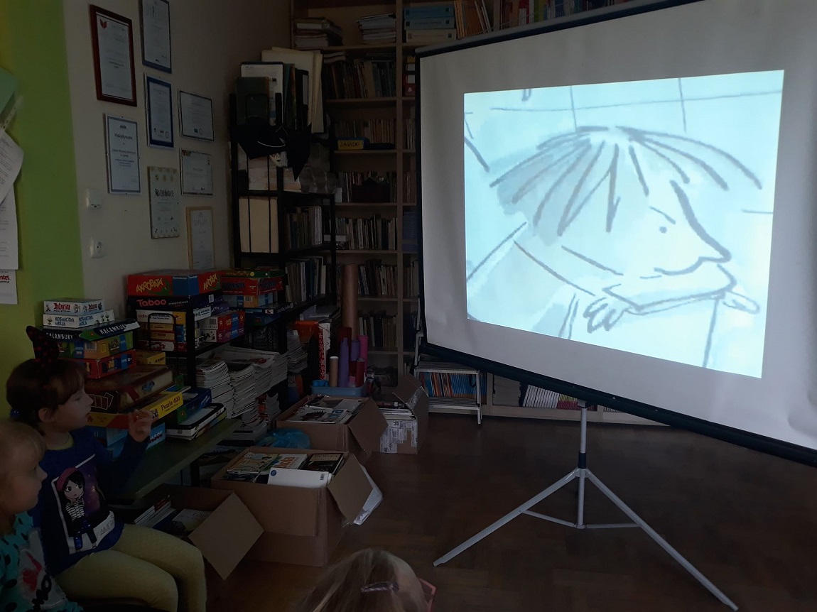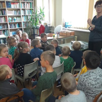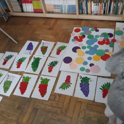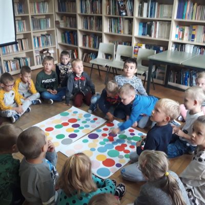 Inspiracją do spotkania z dziećmi przedszkolnymi w bibliotece była kropka- która zmieniła świat małej Vashti, bo za jej przyczyną dziewczynka uwierzyła w siebie i swoje plastyczne możliwości. Stało się to dzięki nauczycielce, która zrezygnowanej Vashti powiedziała:”postaw znaczek, a zobaczysz dokąd cię przeniesie”.Dzieci obejrzały film pt. „Kropka” i próbowały określić swoje dziecięce mocne strony, które pomagają im wierzyć w siebie. Dzieci przekonywały innych, co w życiu znaczy rodzina, zwierzątko, czy przyjaciel. W bibliotece odnalazły ukryte kółka i kółeczka, potem z nich ułożyły, jak Vashti – piękne kompozycje. Porównały koła pod względem koloru i wielkości. Zabawa z kółeczkami „przeniosła się na papier”, dzieci za pomocą paluszków i farb wypełniały kółeczkowe winogrona i owoce jarzębiny. Przedszkolaki zostały pochwalone za wystrój samych siebie, bo na koszulkach, kokardkach, we fryzurach widniały kropki i kropeczki oraz zostały wręczone im drobne upominki.