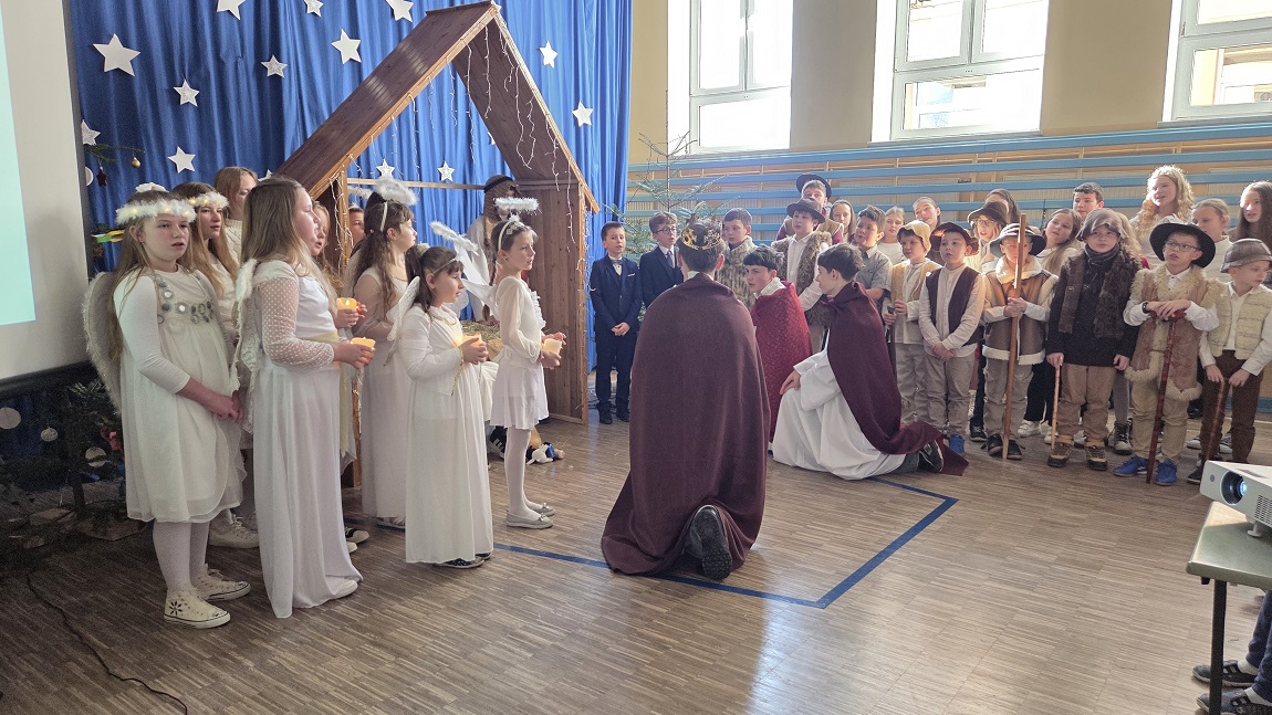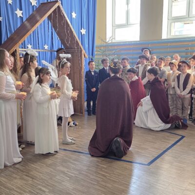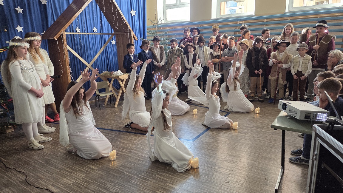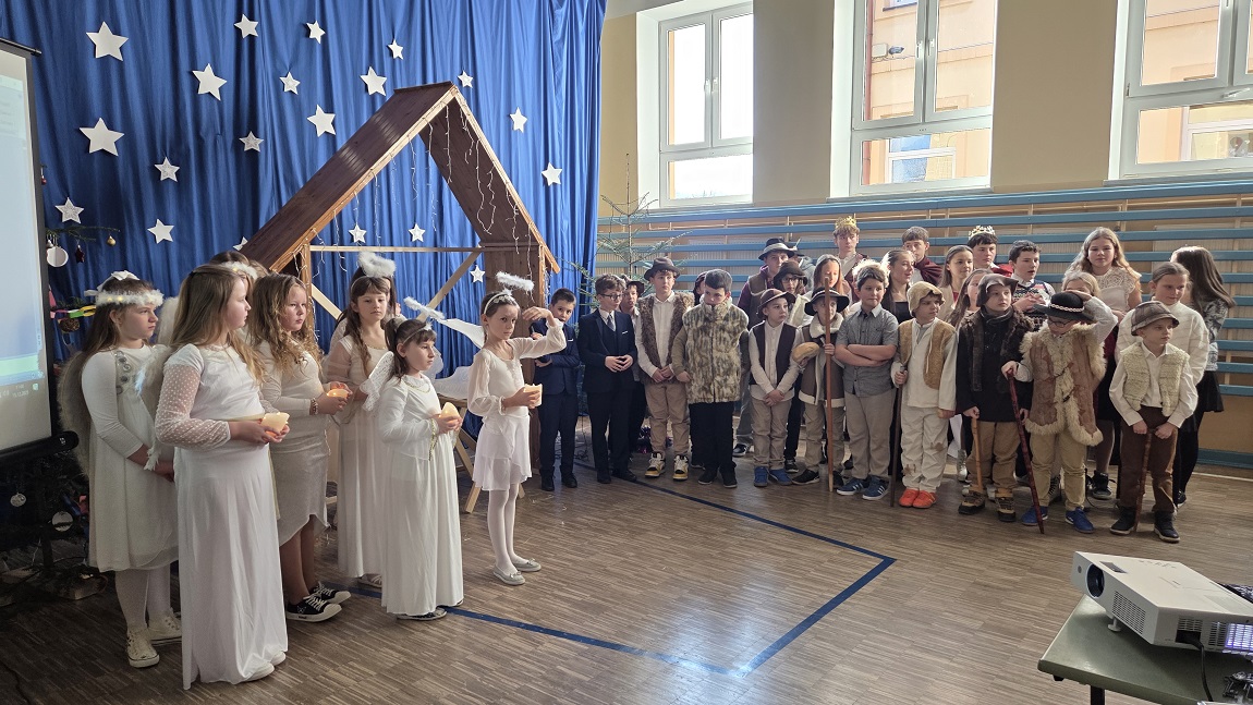 W dniu 19 grudnia 2025 r. w naszej szkole odbyła się akademia upamiętniająca Święta Bożego Narodzenia. Uczniowie przedstawili Jasełka, a wspólny śpiew kolęd i pastorałek wprowadził wszystkich w świąteczny nastrój.