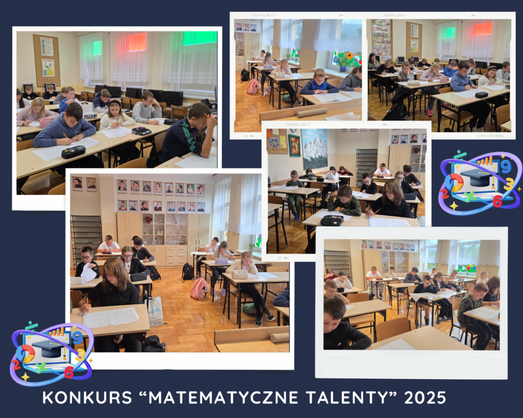 W dniu 01.10.25 trzydziestu trzech uczniów naszej szkoły z klas III – VIII wzięło udział w III edycji konkursu „Matematyczne Talenty” 2025 dla uczniów Szkół Podstawowych z terenu powiatu myślenickiego, zorganizowanego przez Myślenicką Akademię Talentów MAT Myślenice. Uczniowie rozwiązywali test składający się z 20 zadań zamkniętych w kategoriach: klasy III – IV, V – VI i VII – VIII. Do konkursu przystąpiło 752 uczniów z 24 szkół naszego powiatu. Laureatami zostało 60 uczniów.