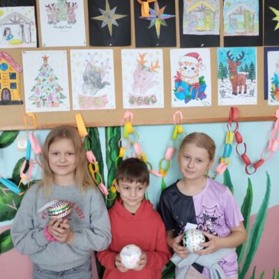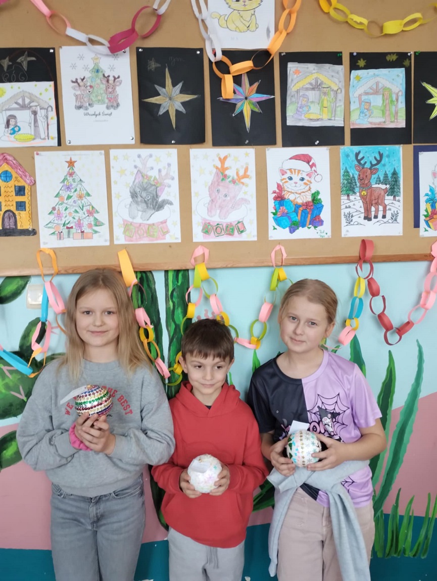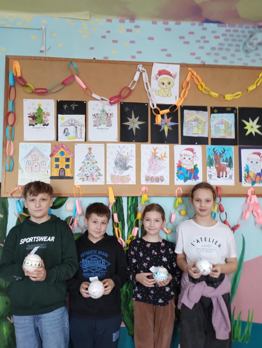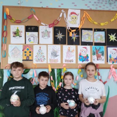 Wychowankowie Świetlicy uczestniczyli w konkursie plastycznym „Najładniejsza bombka”. Zadaniem uczniów było ozdobienie styropianowej bombki z wykorzystaniem cekinów i szpilek. Przy ocenie prac zwracano uwagę na pomysłowość, oryginalność, estetykę i jakość wykonania. Wszyscy uczniowie biorący udział w konkursie otrzymali dyplomy i nagrody rzeczowe.