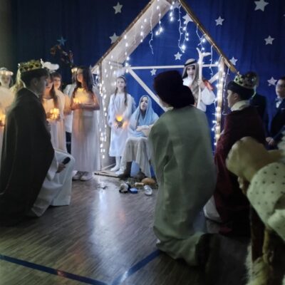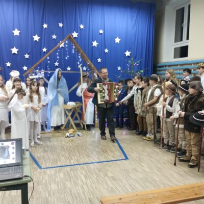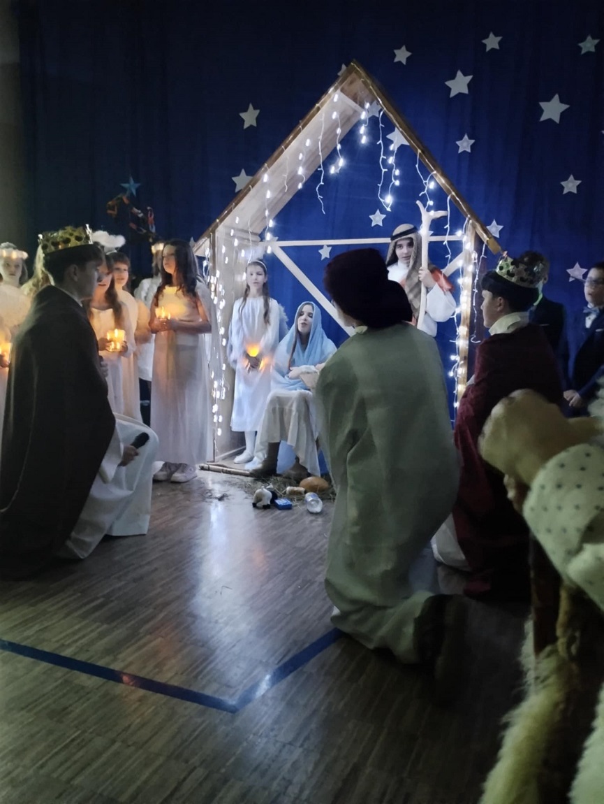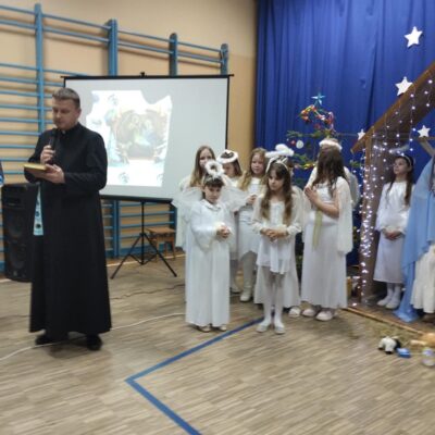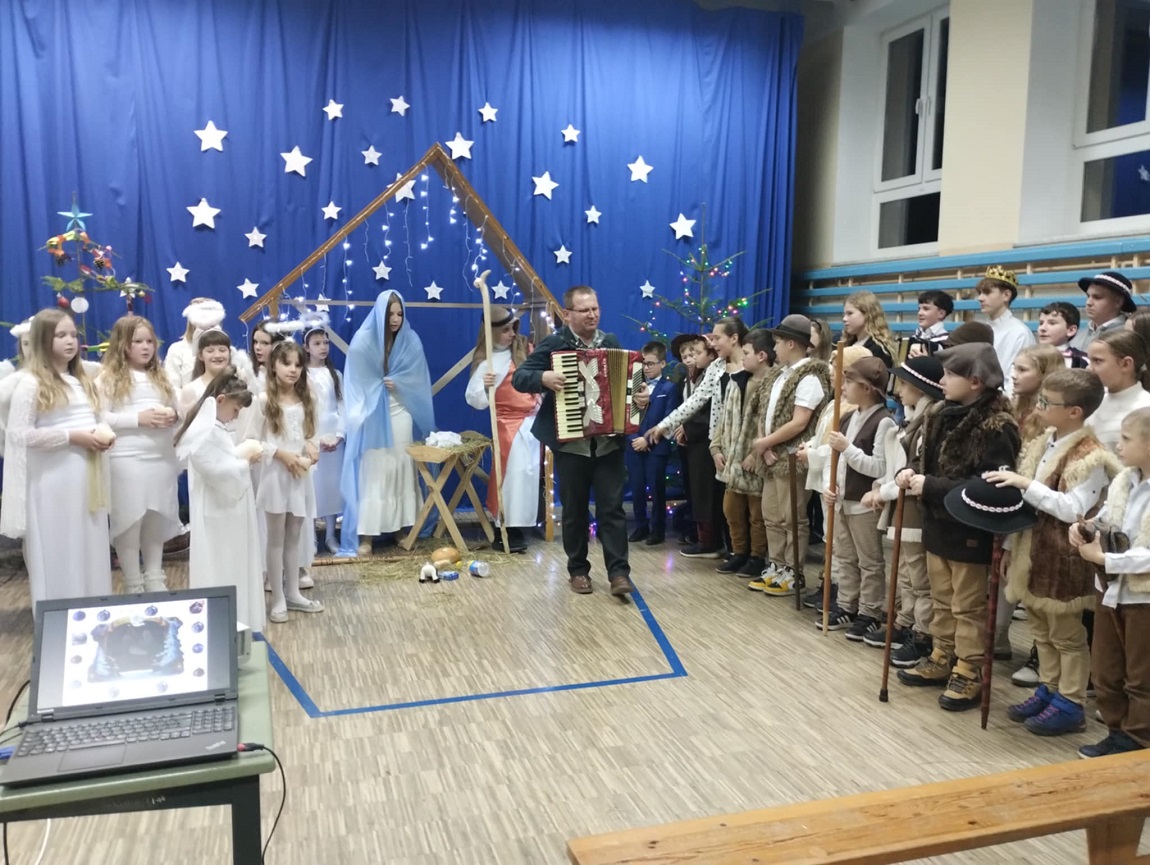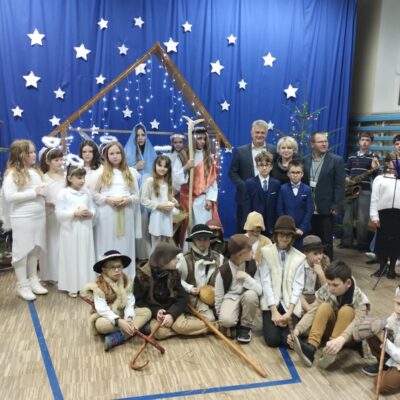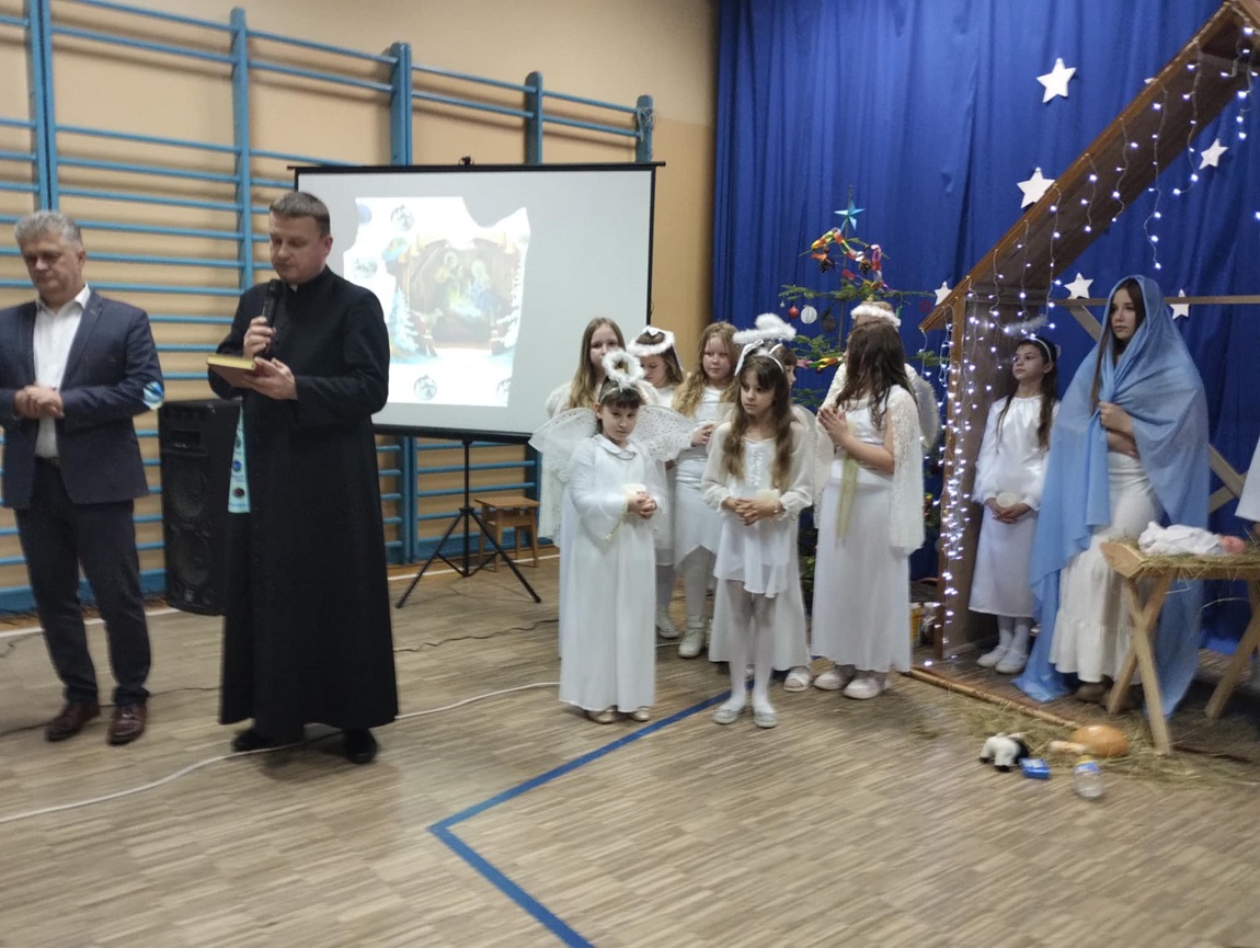 W dniu 19 grudnia 2025r. w szkole odbyło się Międzypokoleniowe Spotkanie Jasełkowe. Uroczystość rozpoczął Pan Dyrektor, który przywitał zebranych i złożył świąteczne życzenia. Goście obejrzeli Jasełka w wykonaniu uczniów naszej szkoły, wysłuchali przekazu świątecznego Księdza Proboszcza Piotra Pietruszki oraz podzielili się opłatkiem. Wspólny śpiew kolęd i pastorałek wprowadził zebranych w świąteczny nastrój. Organizatorzy dziękują wszystkim , którzy pomogli w przygotowaniu tej uroczystości.