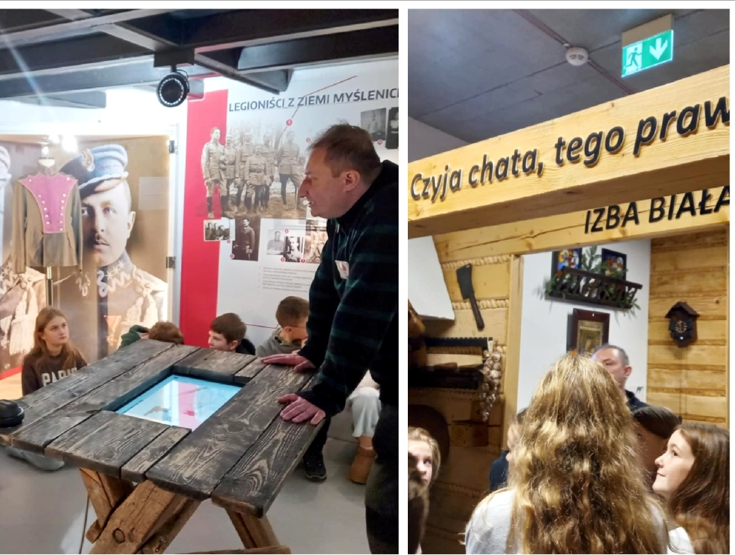 Następnie kl.5 udała się do Muzeum Niepodległości, gdzie dzięki opowieści przewodnika p. Andrzeja Małysy poznawała elementy dziedzictwa kulturowego Powiatu Myślenickiego.