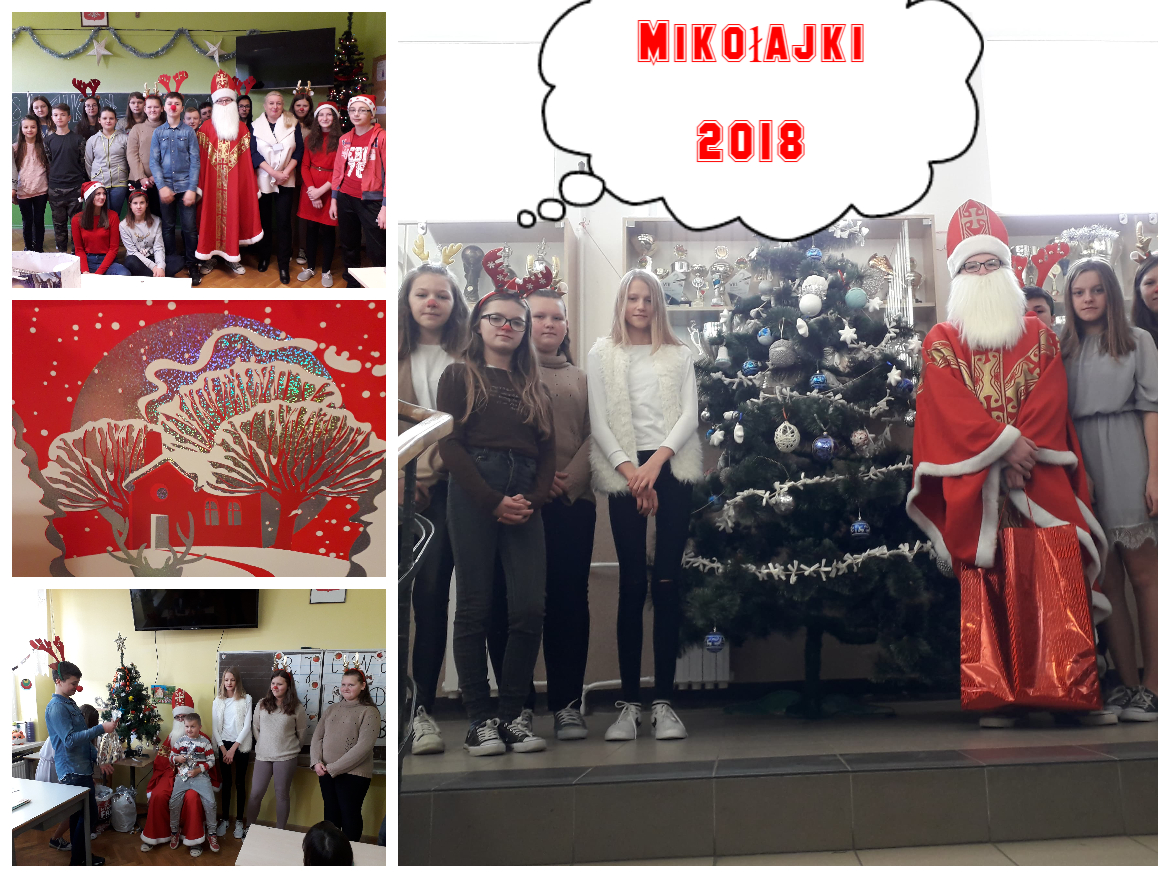 Dnia 6 grudnia w naszej szkole odbył się mikołajkowy korowód, podczas którego Mikołaj rozdawał prezenty. Niektóre klasy bardzo długo czekały na tego ważnego gościa, aż wreszcie otrzymały upragnione prezenty. Było ich bardzo dużo, dlatego Mikołaj potrzebował pomocników, takich jak elfy, śnieżynki czy renifery. To był wspaniały dzień, pełen niezapomnianych wrażeń. Dziękujemy za wizytę i do zobaczenia za rok!