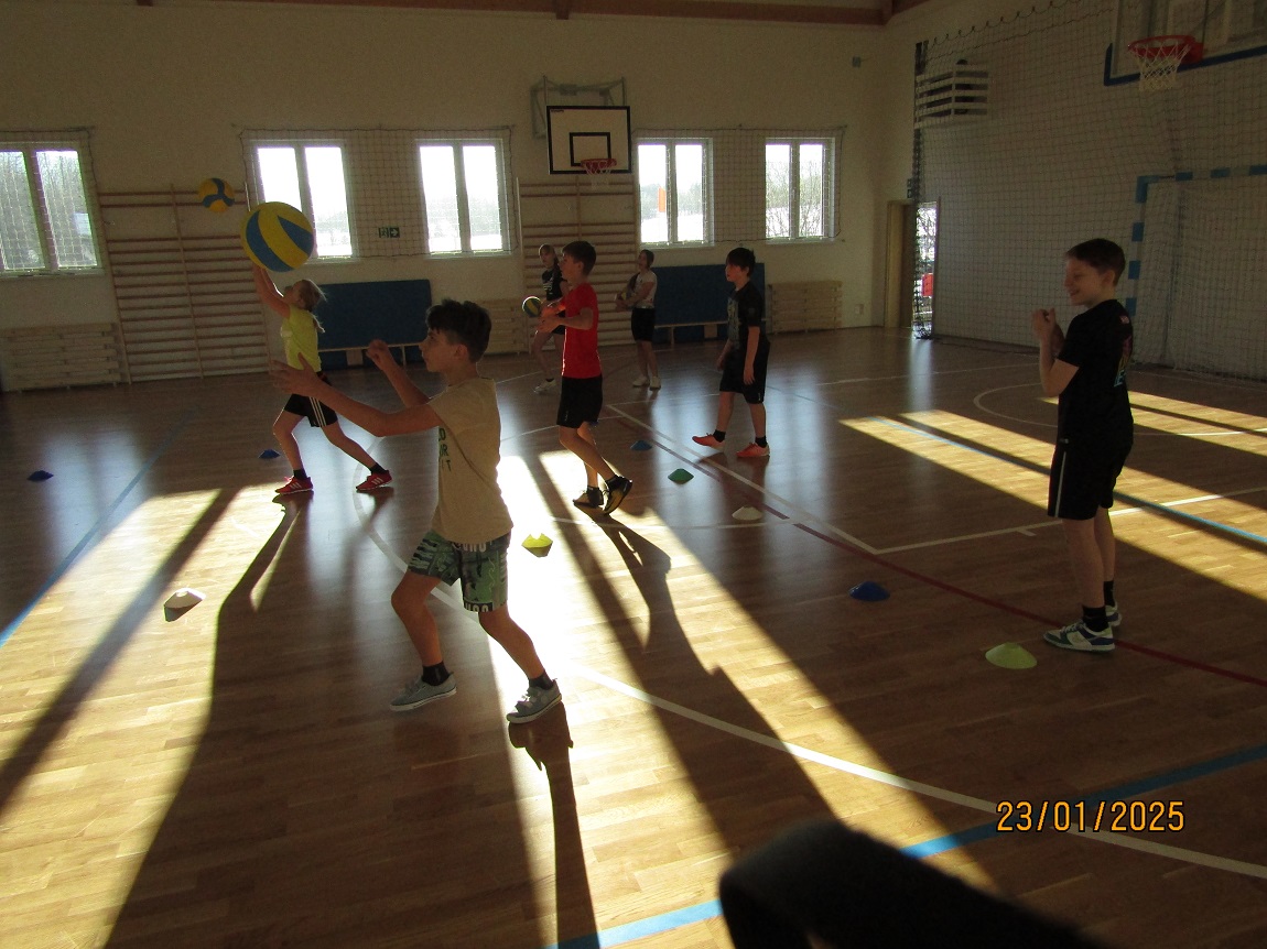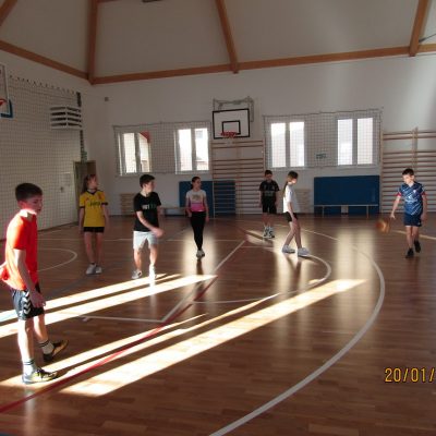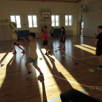 W pierwszym tygodniu zimowych ferii, w nowo otwartej sali gimnastycznej naszej szkoły, odbywały się zajęcia sportowe. W zajęciach tych uczestniczyli uczniowie klas 6-7, którzy pragnęli rozwijać swoje umiejętności w grach zespołowych. Szczególnym zainteresowaniem cieszyła się piłka siatkowa poprzedzona jak zwykle rozgrzewką i profesjonalnym treningiem. Widoczny przyrost umiejętności uczestniczących w zajęciach, sprawiał im wyraźną radość i mobilizował do kolejnych treningów. Poza siatkówką uczniowie doskonalili umiejętności gry w piłkę ręczną, piłkę koszykową oraz w futsalu. Atmosfera zajęć i zaangażowanie uczniów w podejmowaniu stawianych przed nimi wyzwań, a także przestrzeganie zasad fair-play sprzyjały dobrej zabawie, a wspólnie spędzony czas na długo pozostanie w pamięci.