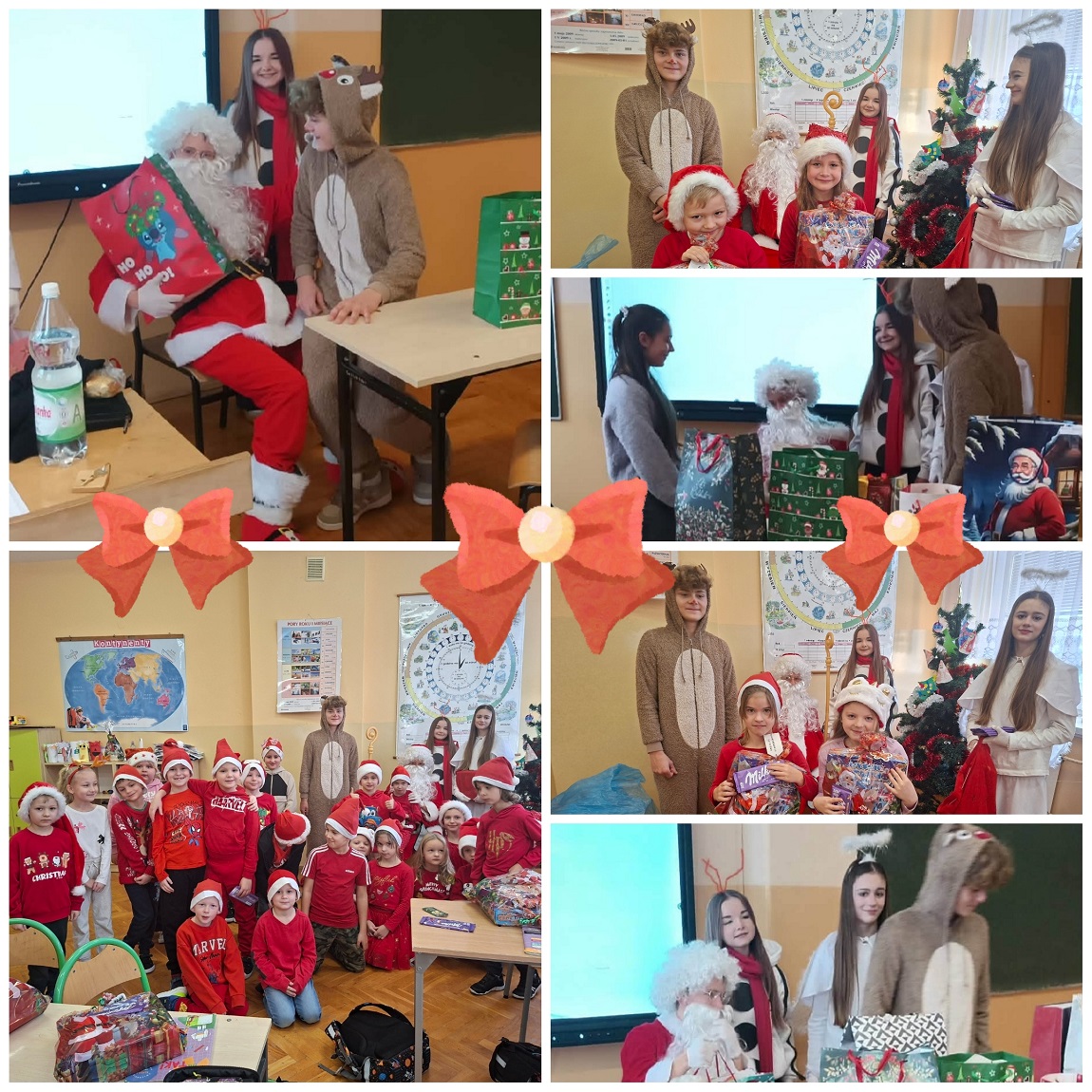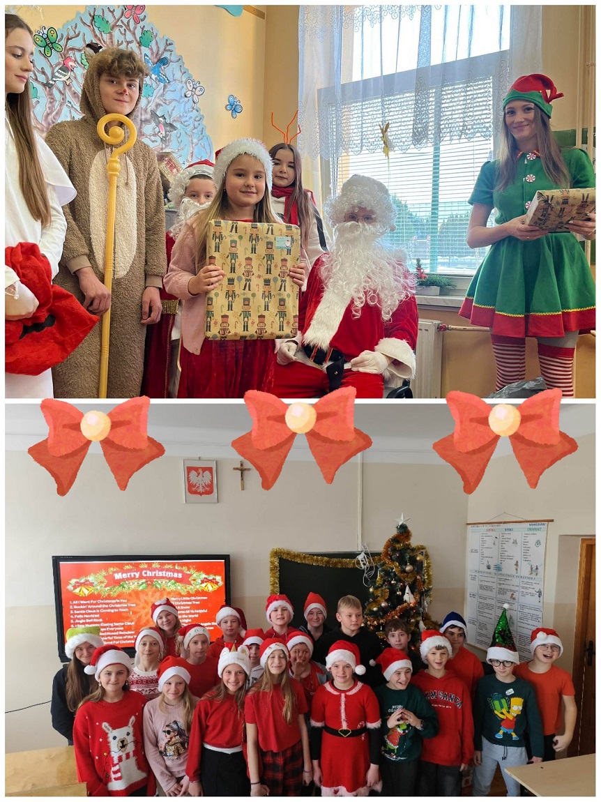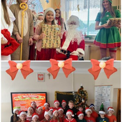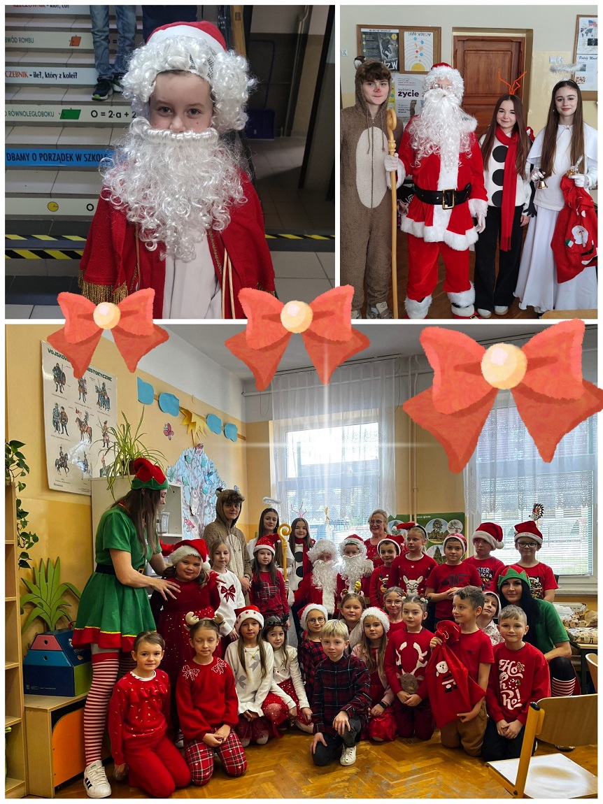 Od samego rana po szkole wędrował Święty Mikołaj w towarzystwie bałwanka, renifera i anioła. Odwiedzali klasy, rozdawali prezenty i częstowali wszystkich słodkościami. Dzieci reagowały z ogromnym entuzjazmem, a w wielu salach panował prawdziwie magiczny nastrój.