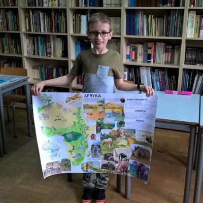 Klasa druga uczestniczyła w projekcie ”Dookoła świata”. Zadaniem uczniów było wyszukanie ciekawostek o wybranym kontynencie oraz wykonanie plakatu. Wszystkie prace zostały ocenione, a uczniowie otrzymali dyplomy i nagrody.