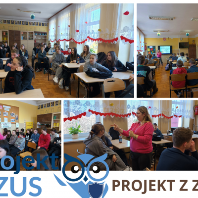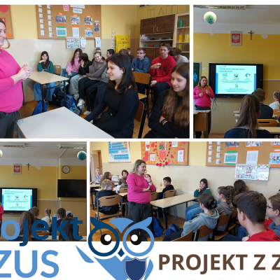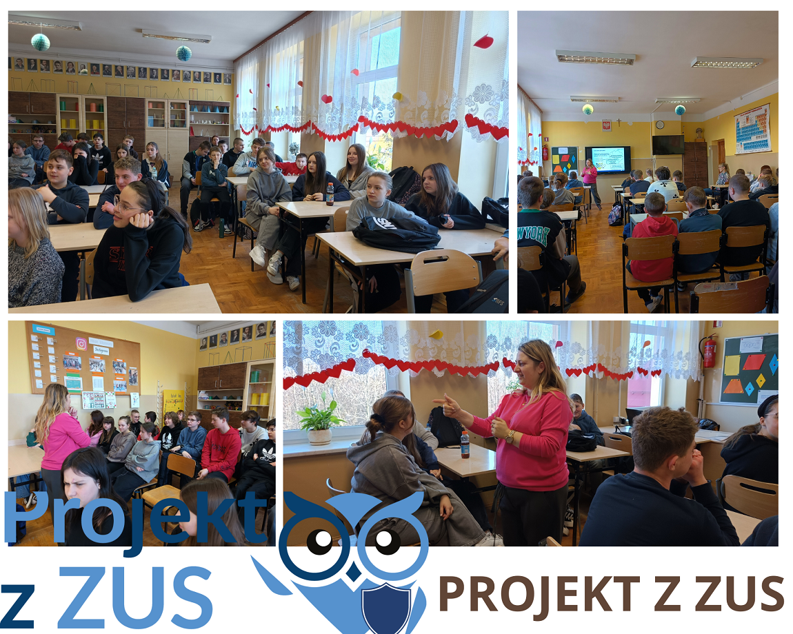 W dniu 21 lutego 2025r. uczniowie klasy VIIa, VIIb i VIII wzięli udział w dwugodzinnym spotkaniu z Panią Moniką Suder Koordynator ds. komunikacji społecznej i edukacji w Zakładzie Ubezpieczeń Społecznych w Krakowie. Pani Monika przybliżyła uczniom informacje na temat ubezpieczeń społecznych. Uczniowie dowiedzieli się jakie są rodzaje ubezpieczeń społecznych, dlaczego warto podlegać ubezpieczeniom społecznym i na jakie świadczenia mogą liczyć, jeżeli będą w przyszłości opłacać składki. Uczniowie poznali wysokość najniższej i najwyższej emerytury wypłacanej w Polsce. Pani Monika zachęciła uczniów do wzięcia udziału w „Projekcie z ZUS”, który polega na przygotowaniu pracy konkursowej, wyjaśniającej dlaczego ubezpieczenia społeczne są ważne. Głównym celem „Projektu z ZUS” jest uświadomienie młodym ludziom roli ubezpieczeń społecznych. „Projekt z ZUS” uczy młodzież, by być wzajemnie odpowiedzialnym wobec osób, które przynależą do innych pokoleń, ubezpieczać się w czasie aktywności zawodowej i indywidualnie dbać o swoją emerytalną przyszłość. Wszystko po to, aby systematyczne budować świadomość młodego pokolenia o tym, jak ważne są ubezpieczenia społeczne.
