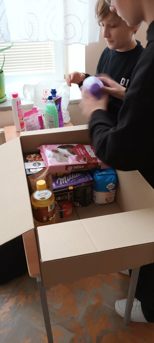 Klasa VIII b w grudniu wzięła udział w dwóch akcjach charytatywnych organizowanych przez szkolny wolontariat, ” Paczka dla Seniora” oraz ” Rodacy Bohaterom”. Uczniowie oraz rodzice przygotowali paczki z artykułami żywnościowymi i chemicznymi.