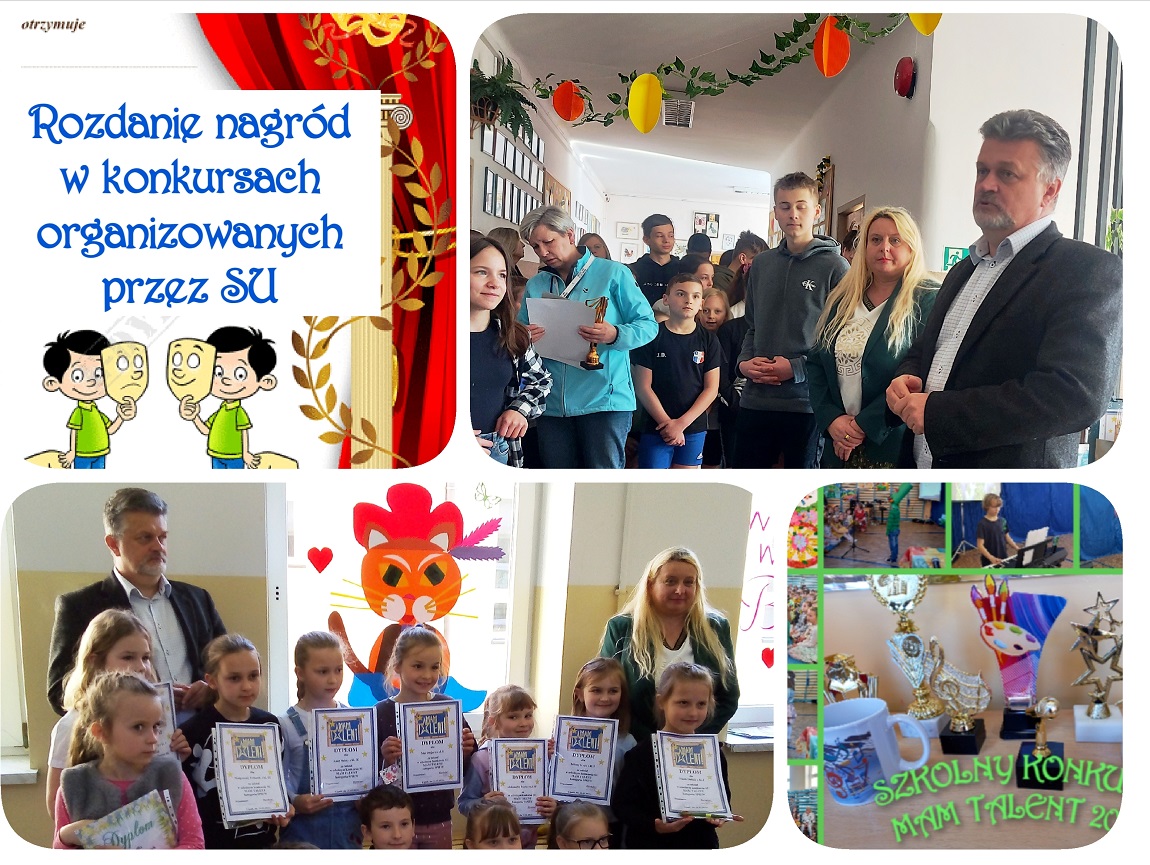 13.04.b.r. rozdano 75 dyplomów i nagród uczniom biorącym udział w szkolnych konkursach SU. Nagrody ufundował Dyrektor szkoły oraz Samorząd Uczniowski.