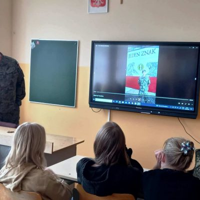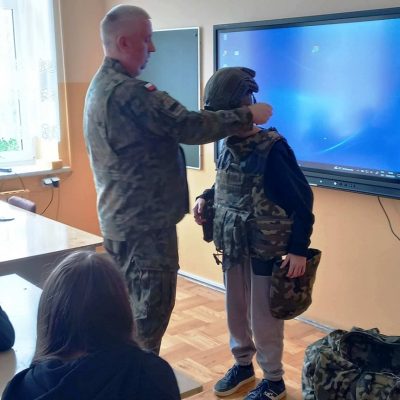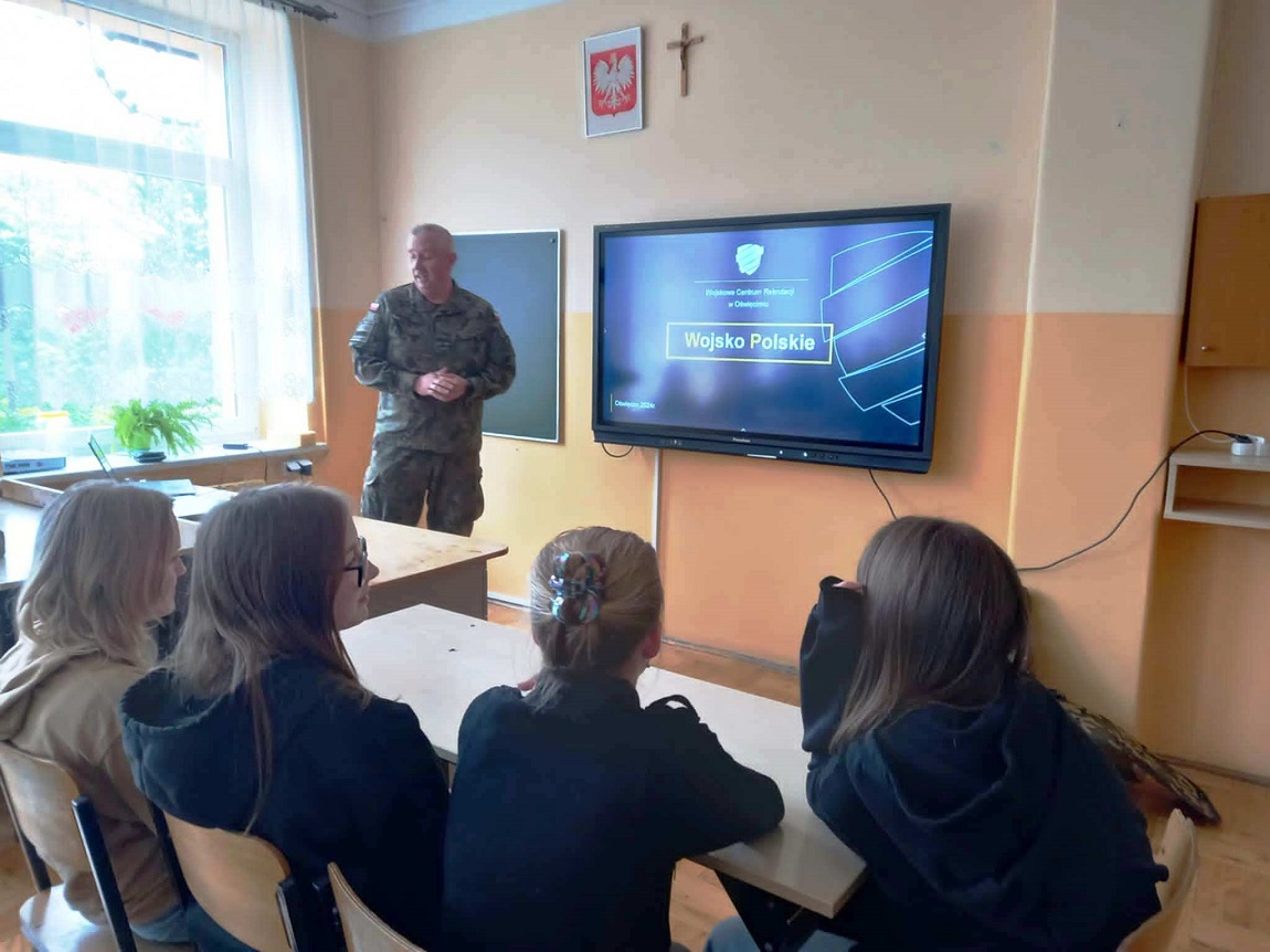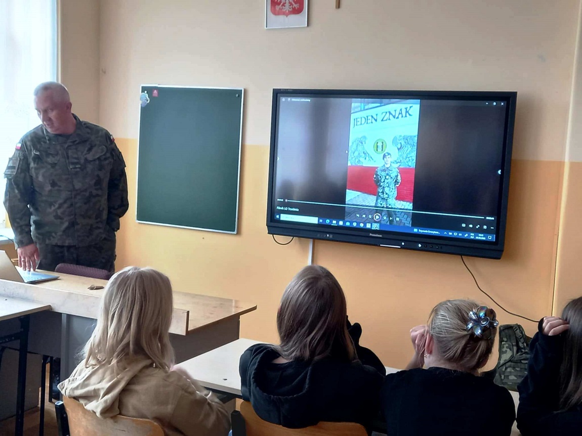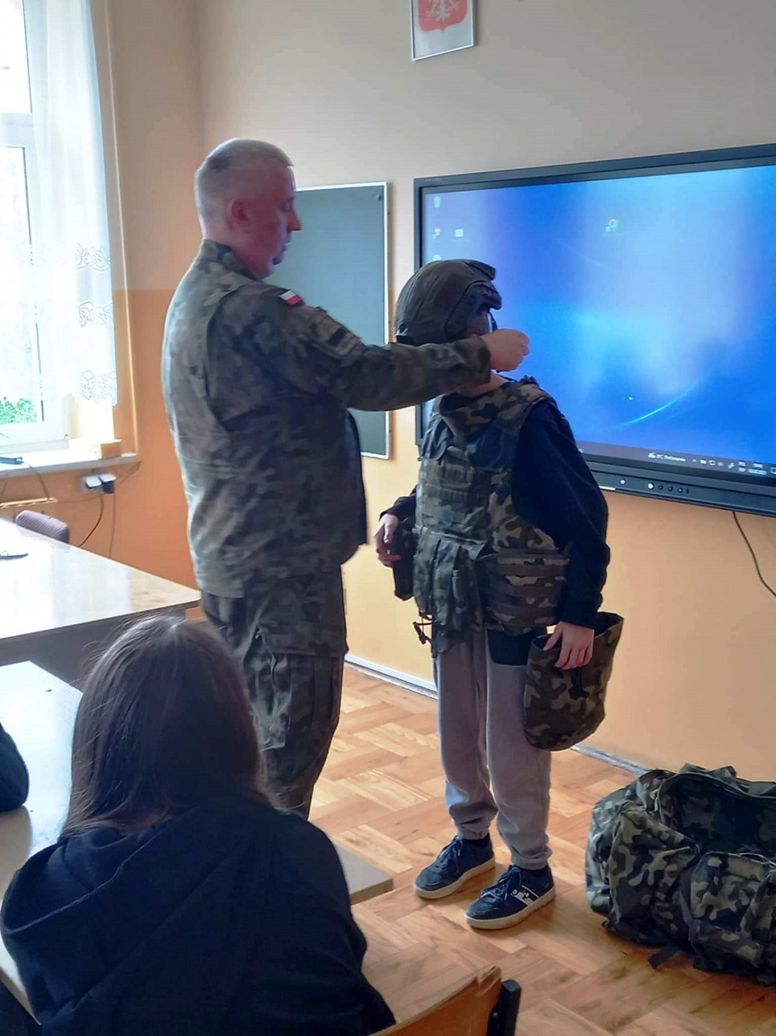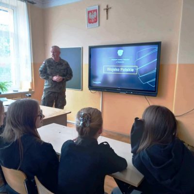 7 maja b.r. uczniowie klas 7 i 8 spotkali się ze starszym szeregowym Mariuszem Frączkiem z Wojskowego Centrum Rekrutacji w Oświęcimiu.