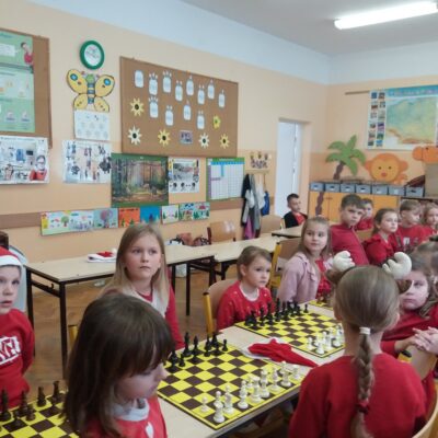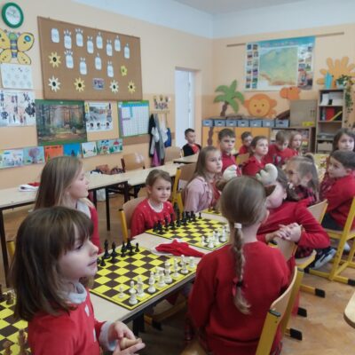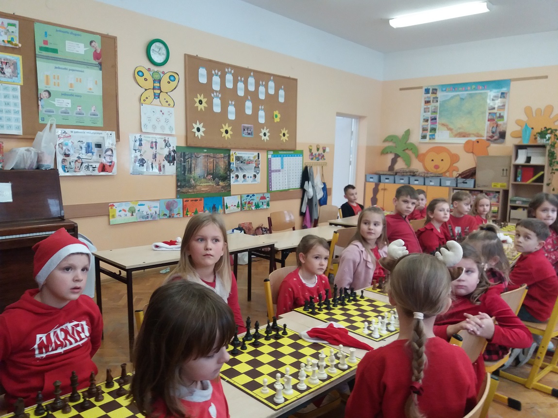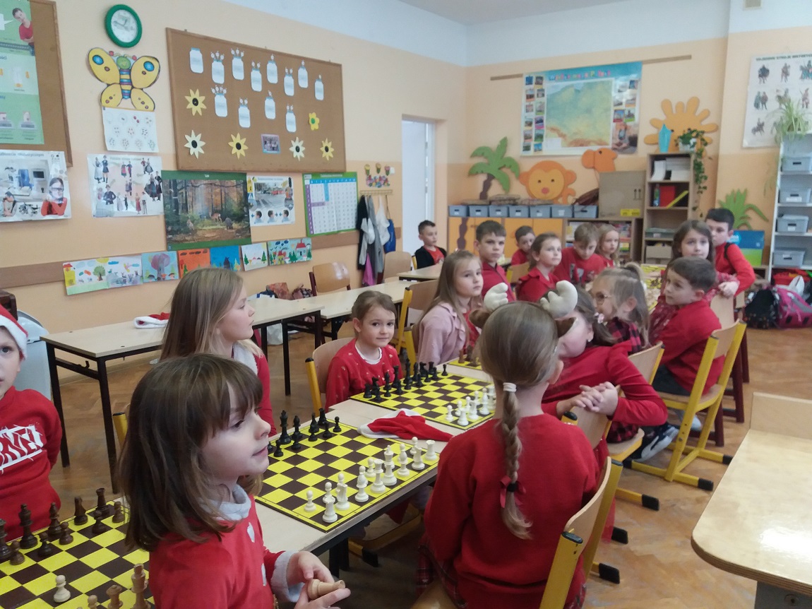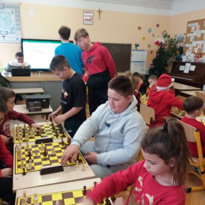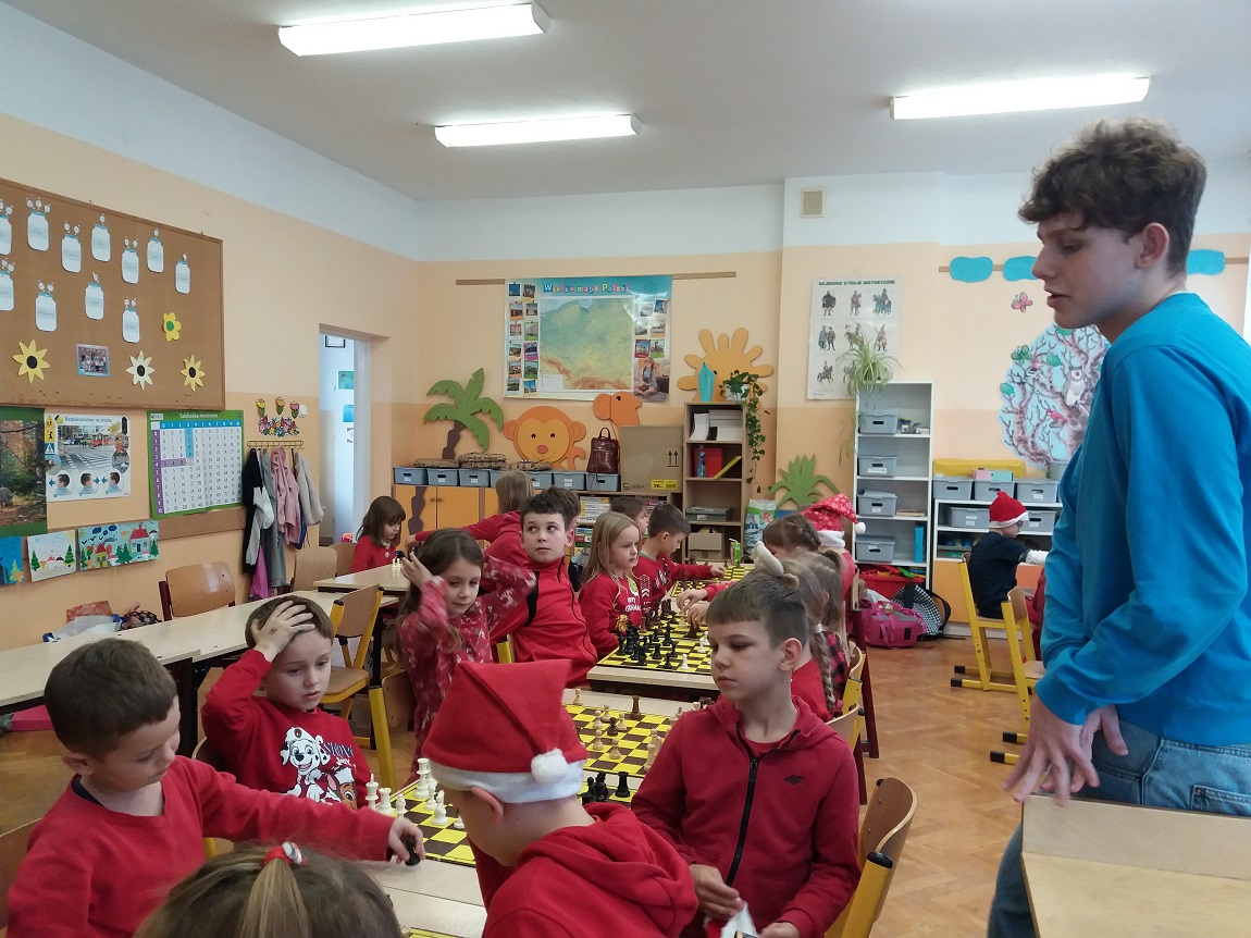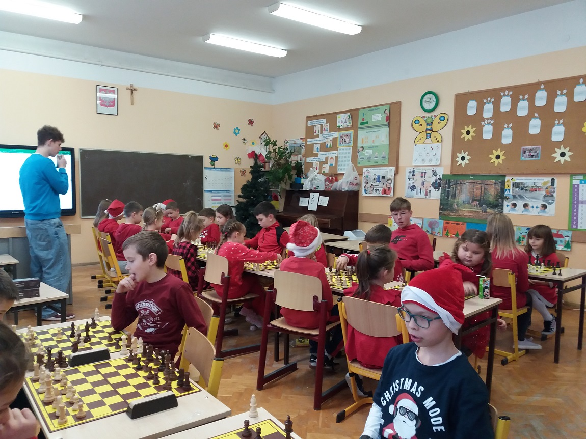 W szachowych potyczkach uczestniczyło 24 uczniów z naszej szkoły, którzy regularnie biorą udział w zajęciach prowadzonych przez Pana Olka Sushchova. Zawody sprawnie sędziowali nasi starsi uczniowie: Nikolas Dudzik i Michał Florek. Rywalizacja dostarczyła wielu emocji, ale przede wszystkim była to fantastyczna zabawa!
