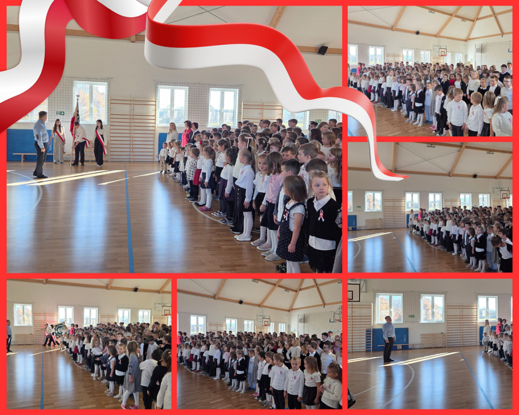 W dniu 7 listopada 2025r. około godziny 11.11 uczniowie, przedszkolaki i nauczyciele spotkali się w sali gimnastycznej, aby wspólnie odśpiewać Mazurek Dąbrowskiego z okazji nadchodzącego Święta Niepodległości. Wszyscy w odświętnych strojach, z kotylionami i chorągiewkami na komendę pana Dyrektora „Baczność! Do Hymnu Państwowego” odśpiewali cztery zwrotki Hymnu. Radosny śpiew uświadomił nam, że powinniśmy być dumni z wolnej i niepodległej Ojczyzny, że mamy swój własny kraj i możemy żyć w czasie pokoju.