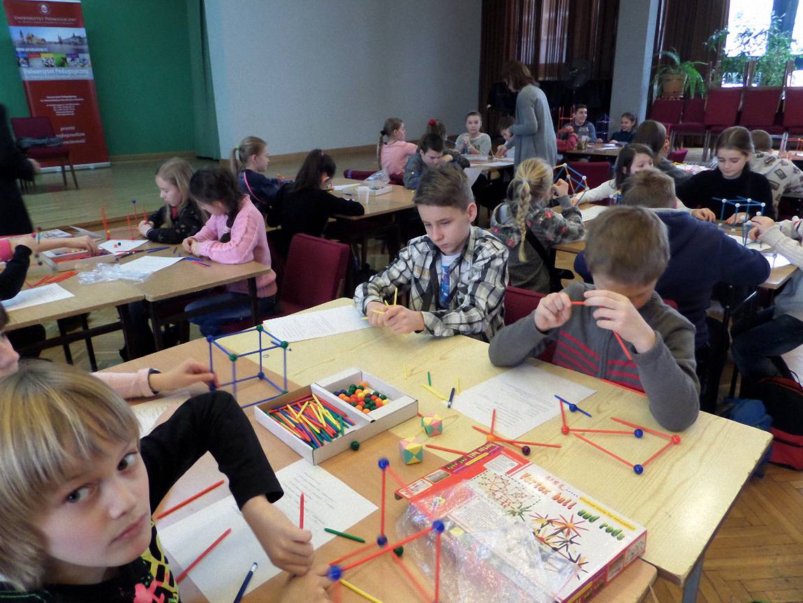 W dniu 19.02.15r. trzech uczniów klasy szóstej Szkoły Podstawowej w Lipniku uczestniczyło w warsztatach matematycznych zorganizowanych przez Oddział Krakowski Stowarzyszenia Nauczycieli Matematyki oraz Wydział Matematyczno-Fizyczno-Techniczny Uniwersytetu Pedagogicznego w Krakowie. Zajęcia przeznaczone były dla uczniów klas 4 – 6 małopolskich szkół podstawowych, którzy zechcieli poznać matematykę od innej, trochę nietypowej strony. Mimo, że jest to czas ferii i odpoczynku na warsztaty przybyło 190 uczniów. Wszystkich zebranych w imieniu władz uczelni uroczyście powitał dr Antoni Chronowski. W ramach zajęć uczniowie brali udział w interesujących grach i zabawach matematycznych rozwijających logiczne myślenie. Warsztaty były zorganizowane w 4 grupach – w każdej z nich można było uczestniczyć w innej zabawie matematycznej: origami, budowanie figur geometrycznych, zadania geometryczne, rozwiązywanie zagadek i łamigłówek.