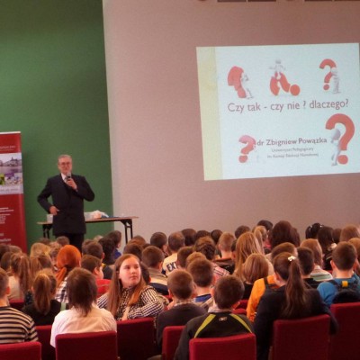 W drugiej części warsztatów uczniowie brali udział w bardzo ciekawym wykładzie pana dr Zbigniewa Powązki pt. „Czy tak – czy nie? dlaczego?”, w trakcie którego również rozwiązywali liczne łamigłówki, zagadki i odpowiadali na pytania.