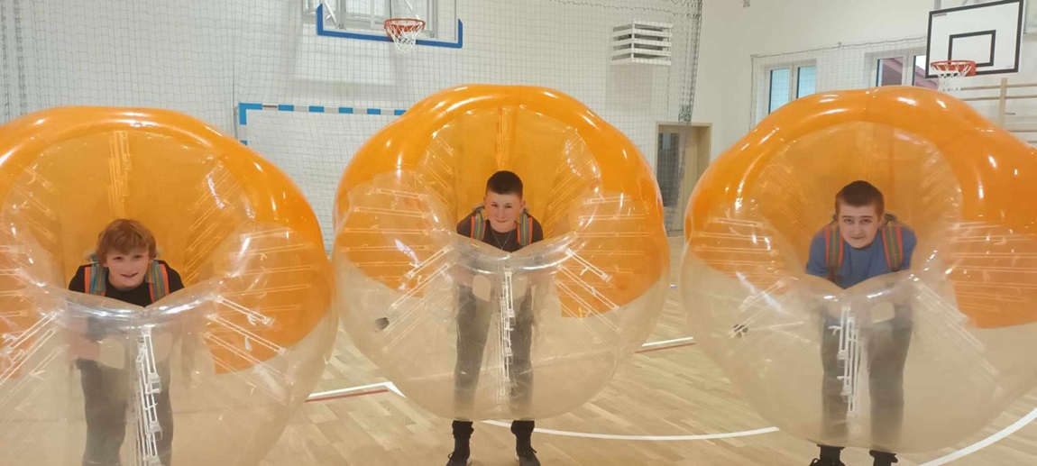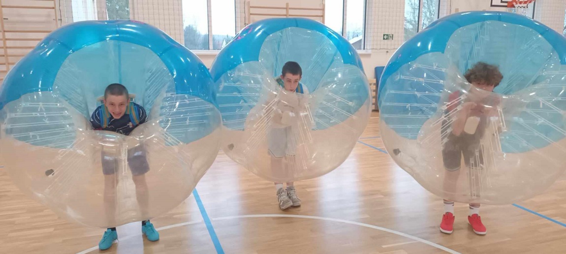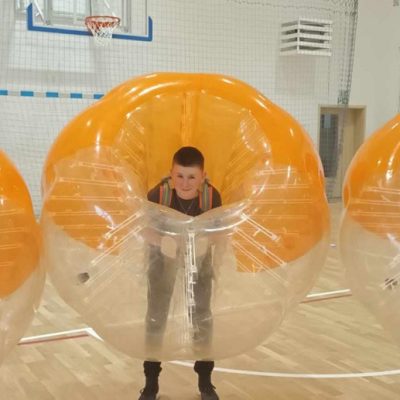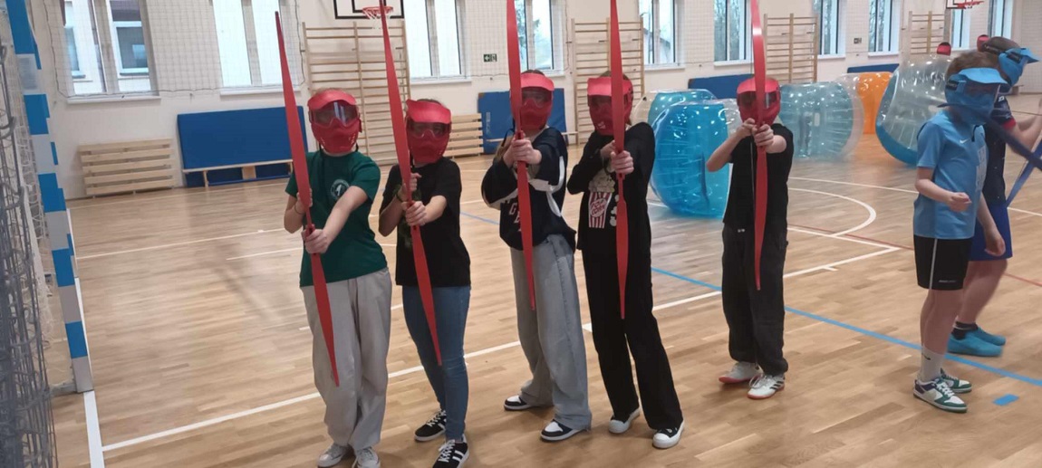 W dniu dzisiejszym uczniowie klasy VII b i kilku uczniów klasy VII a uczestniczyło w nietypowych lekcjach wychowania fizycznego. Zagraliśmy w piłkę nożną w kulach bumper ball i archery tag,- forma paint balla, w którym używaliśmy łuku i bezpiecznych strzał. Lekcje były intensywne, pełne zaangażowania i radości.