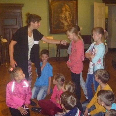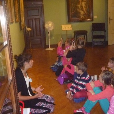 Pierwszą placówką, którą odwiedziliśmy był Dom Jana Matejki. Zachwyciły nas zgromadzone tam eksponaty związane z dzieciństwem i twórczością słynnego, polskiego malarza. Na I piętrze podziwialiśmy sypialnię, zwaną pokojem pod gwiazdami i salon państwa Matejków. Na II piętrze można było zobaczyć pokój, w którym urodził się Jan Matejko oraz galerię obrazów namalowanych przez artystę np. ,,Rodzinne portrety”, ,,Bitwa pod Grunwaldem”.