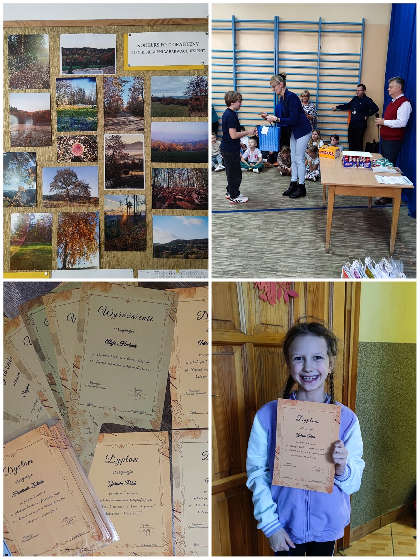W dniu 25 listopada zakończył się szkolny konkurs fotograficzny pt. „Lipnik się mieni w barwach jesieni”. Wzięło w nim udział 16 osób. Dzień później odbyło się spotkanie Samorządu Uczniowskiego w celu rozstrzygnięcia konkursu. Głosowało piętnastu członków SU (nie mogły w nim brać udział osoby, które wykonały fotografie konkursowe) oraz opiekun. Każda z szesnastu osób mogła oddać jeden głos w każdej kategorii wiekowej. Oto wyniki konkursu:
