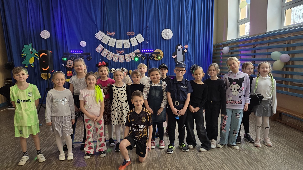 17 lutego w naszej szkole odbyła się zabawa karnawałowa pod hasłem „Bajkowy Karnawał”. Wydarzenie zorganizowane przez Samorząd Uczniowski, na przygotowanej sali gimnastycznej, odbyło się w trzech turach: na 2 godzinie lekcyjnej dla klas 1–3, na 6 i 7 lekcji dla klas 4–8 oraz wieczorem w godzinach 17:00–20:00 dla klas 7 i 8. Był to ostatni dzień wspólnej zabawy przed rozpoczęciem Wielkiego Postu. Dziękujemy uczniom za obecność i przygotowanie pomysłowych strojów.
