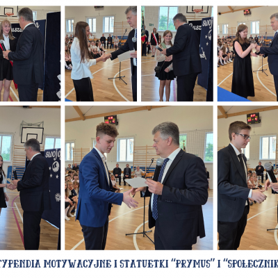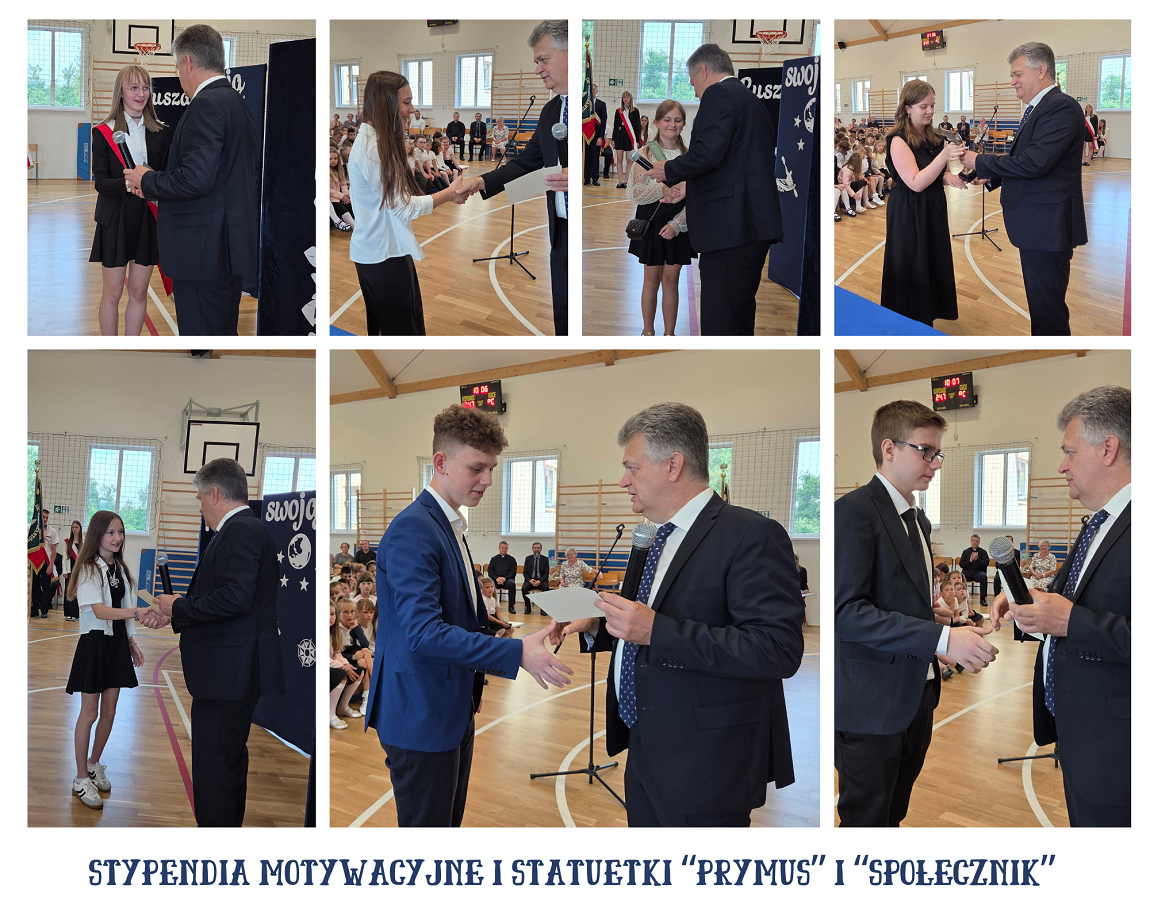 Pan Dyrektor Arkadiusz Skiba wspólnie z Wychowawcami wręczył listy gratulacyjne Rodzicom i świadectwa z czerwonym paskiem uczniom klas 4 – 7. Następnie wspólnie z Panem Wójtem i Wychowawcą Panią Teresą Bobowską wręczył listy gratulacyjne Rodzicom i świadectwa oraz dyplomy uznania uczniom kończącym szkołę. Uczeń klasy ósmej Szymon Skóra otrzymał statuetkę w kategorii „Prymus”, a uczennica Martyna Weszka otrzymała statuetkę w kategorii „Społecznik”– nagrody przyznawane przez Dyrektora ZPO w Lipniku. W tym roku Pan Dyrektor Arkadiusz Skiba wręczył „Stypendia Motywacyjne” dla uczniów klas 4 – 8 biorących udział w konkursach szkolnych i pozaszkolnych na szczeblu powiatowym,wojewódzkim, ogólnopolskim i międzynarodowym i osiągających wysokie miejsca w tych konkursach. Taką nagrodę pieniężną otrzymała  Milena Irzyk z kl. 4, Zofia Cygan z kl. 7b, Szymon Skóra z kl. 8, Nikollaq Dudzik z kl. 7b, Natalia Bajer z kl. 7a, Karolina Konieczna z kl. 6. Pan Dyrektor Arkadiusz Skiba rozdał również dyplomy i nagrody za pracę w sklepiku szkolnym.