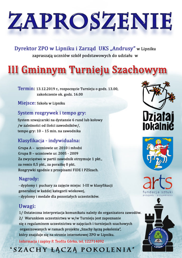 Zaproszenie na III Gminny Turniej Szachowy