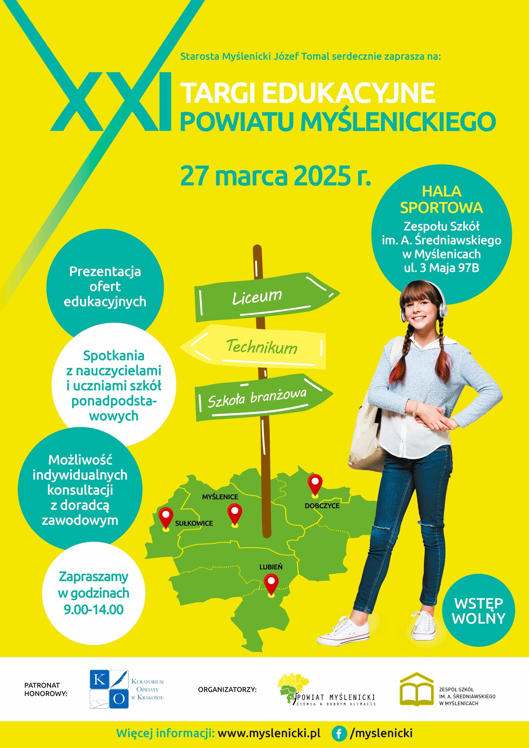 Zaproszenie uczniów i rodziców do udziału w XXI Targach Edukacyjnych Powiatu Myślenickiego 23 marca 2025 Urszula Kucała T. Bobowska