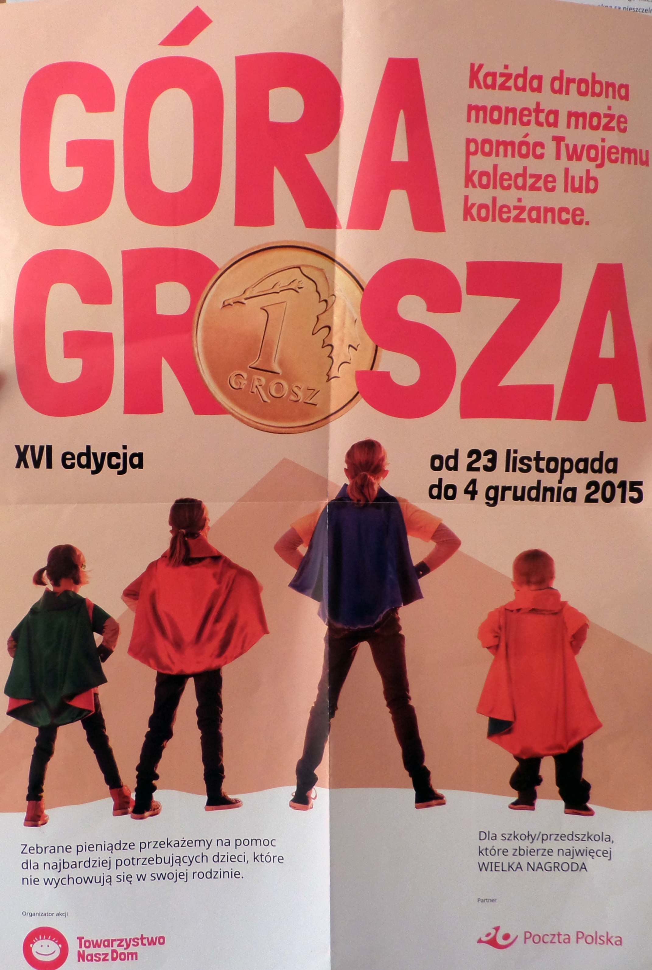 W dniu 23.11.15r. Samorząd Uczniowski ogłosił akcję zbiórki drobnych monet na „Górę Grosza”. Celem na który zbierane są te drobne monety, jest pomoc dzieciom, które wychowują się poza swoją rodziną – w rodzinach zastępczych, [...] więcej...
