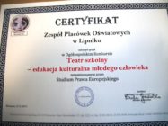 ZPO w Lipniku z certyfikatem „Teatr w szkole – edukacja kulturalna młodego człowieka”