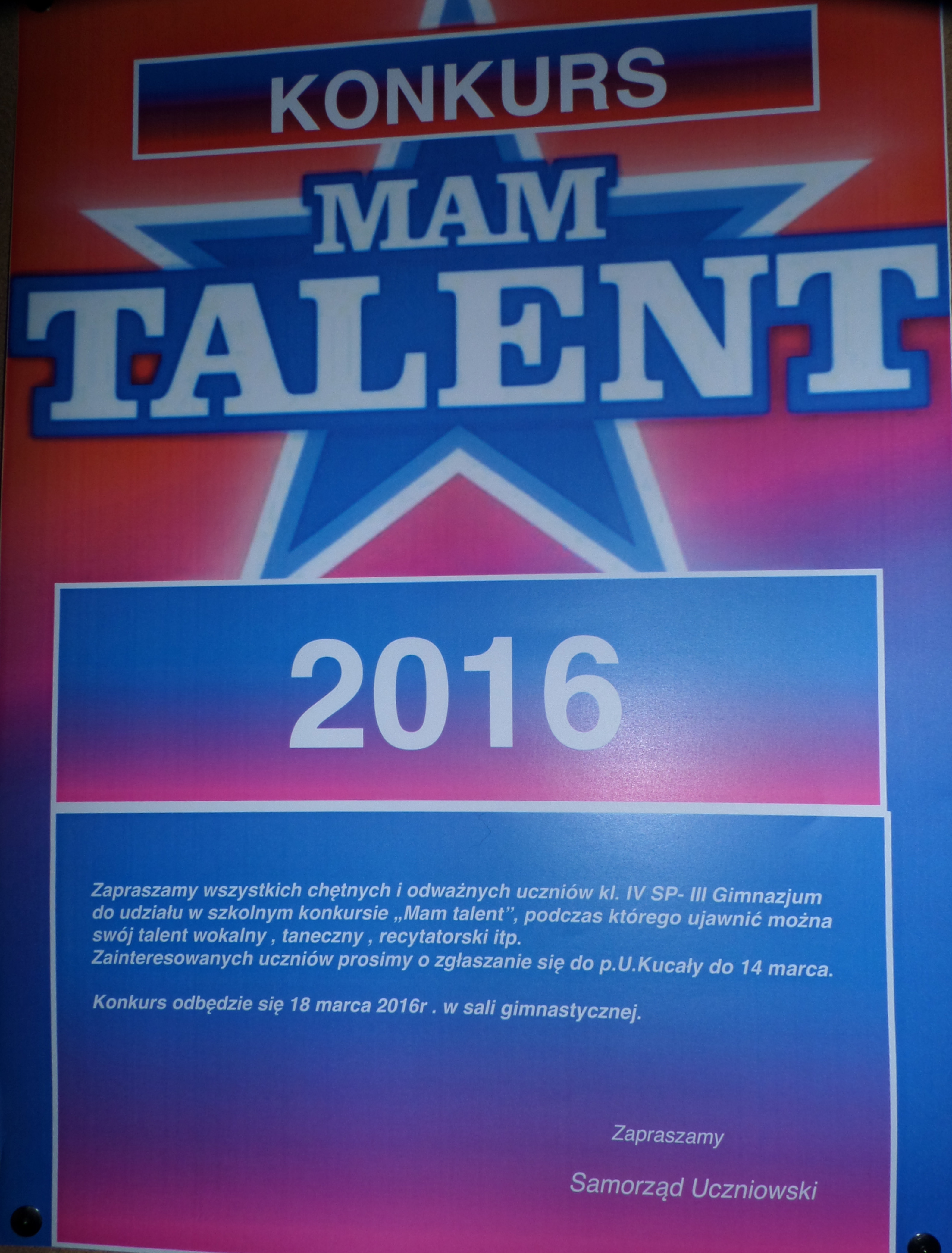 - zorganizował konkurs pt. „Mam talent”