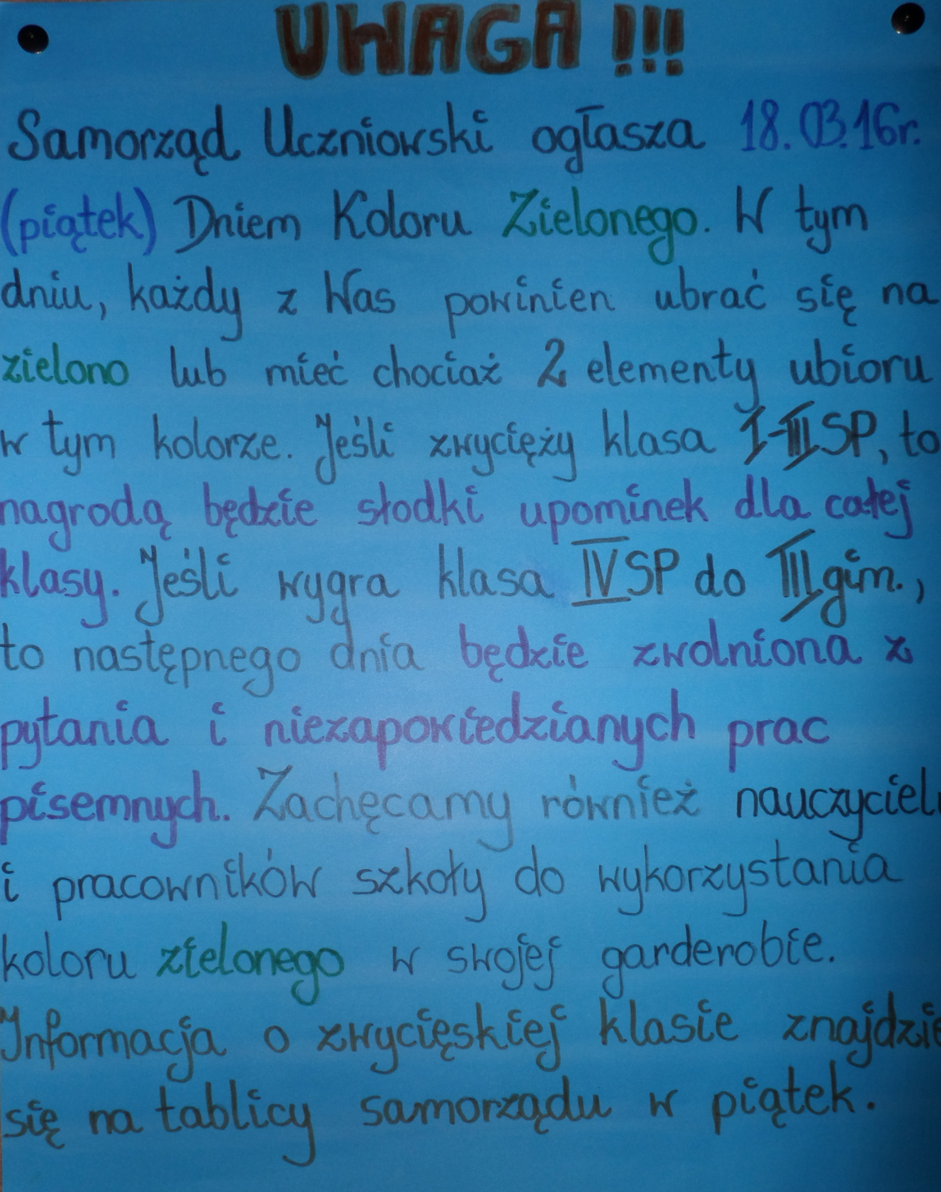 - ogłosił konkurs na Najładniej Udekorowaną klasę