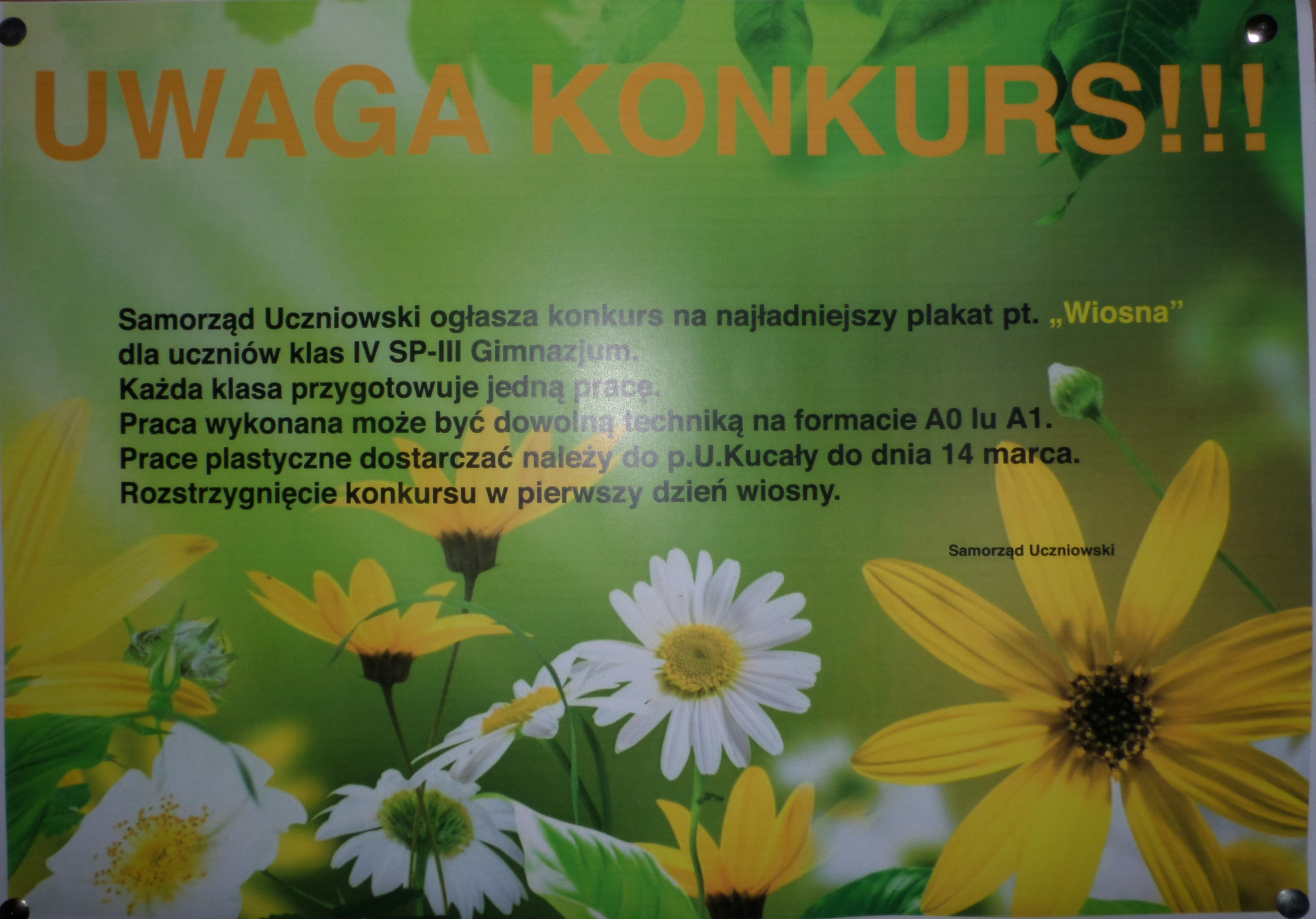 - ogłosił konkurs na plakat pt. „Wiosna”