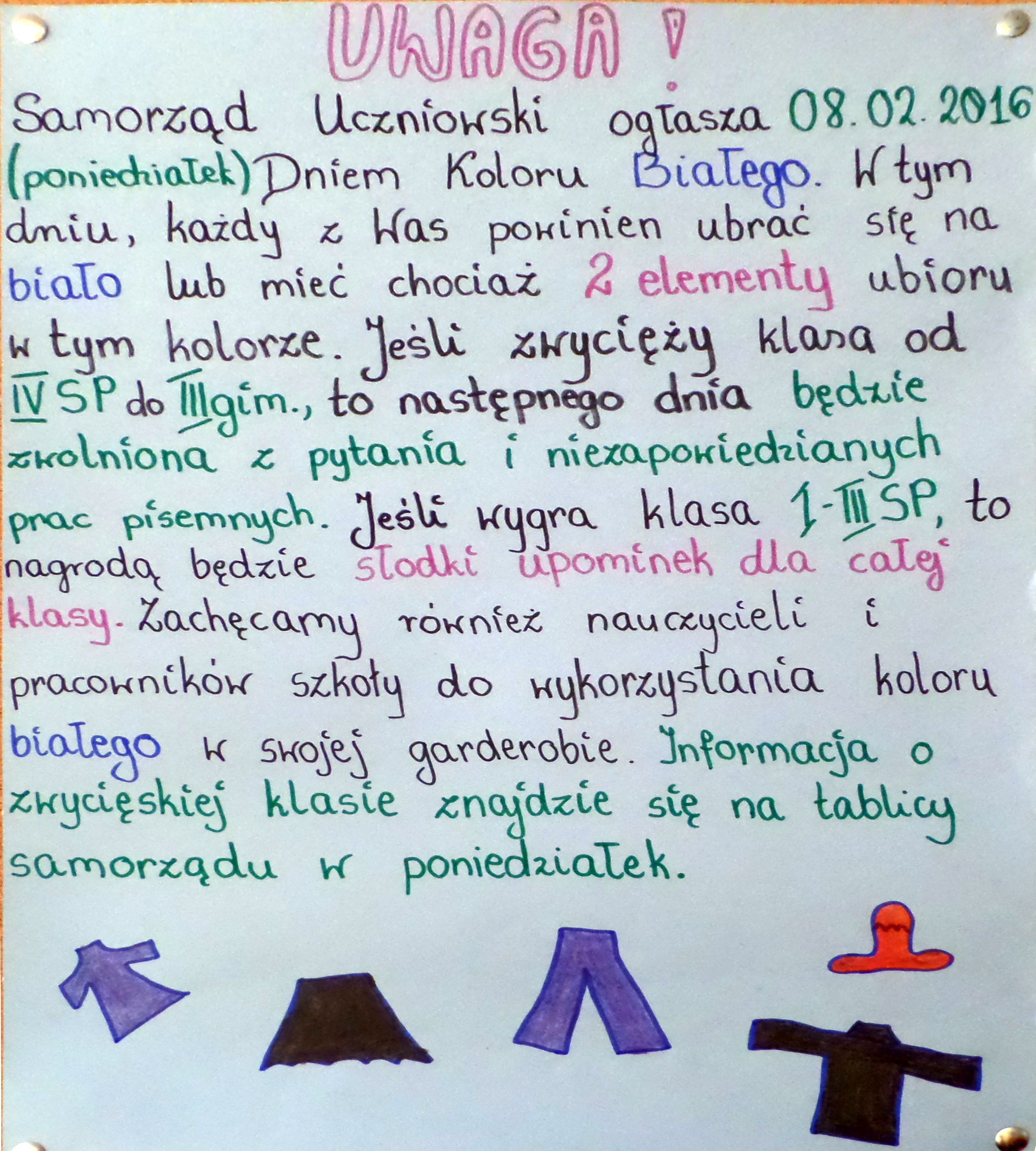 Zachęcamy wszystkich do zaangażowania się w akcje Samorządu Uczniowskiego.