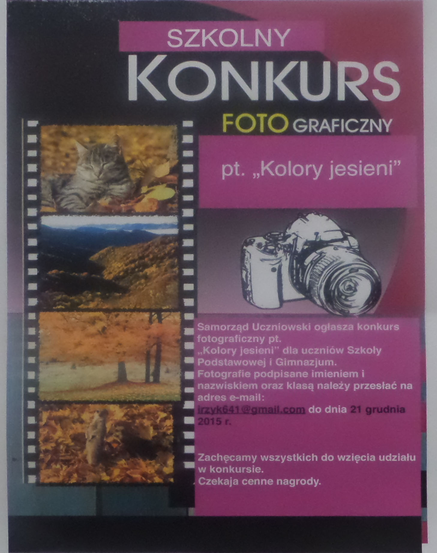 - ogłosił szkolny konkurs fotograficzny „Kolory Jesieni”