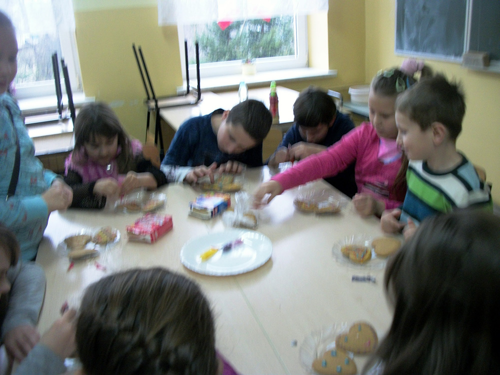 W sobotnie popołudnie 29.11.2014 r. wspólną zabawę rozpoczęliśmy od udekorowania żelkowymi pisakami chrupiących piernikowych serduszek. Następnie wielkie kolejki ustawiły się do kącików wróżb, gdzie w aurze tajemniczości i blasku świec można było poznać swoją przyszłość. Nie zabrakło tradycyjnej wróżby, mówiącej że :”Której but na progu stanie, pierwsza panna na wydanie” i konkursów tanecznych.