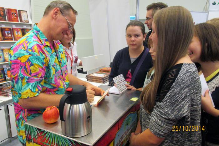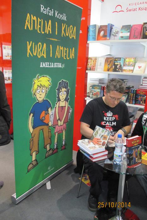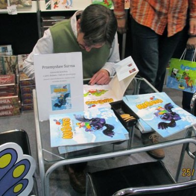 W Salonie Książki Dziecięcej i Młodzieżowej otrzymaliśmy autografy od Anny Onichimowskiej, Wojtka Cejrowskiego, Grzegorza Kaspepkego, Iwony Bielskiej, Joanny Chmielewskiej, Anny Czerwińskiej, Renaty Piątkowskiej, Joanny Krzyżanek – podpisywała książkę „Bajka pachnąca czekoladą”, której to kartki po potarciu palcami naprawdę tak pachniały. Autorka poinformowała nas, że niebawem ukaże się bajka pachnąca truskawkami. Długo staliśmy w kolejce do Rafała Kosika, który podpisywał książkę „Amelia i Kuba”, lecz z powodu ogromnej kolejki i naszego braku czasu musieliśmy zrezygnować ze spotkania z tym autorem. Mamy jednak Jego zdjęcie.