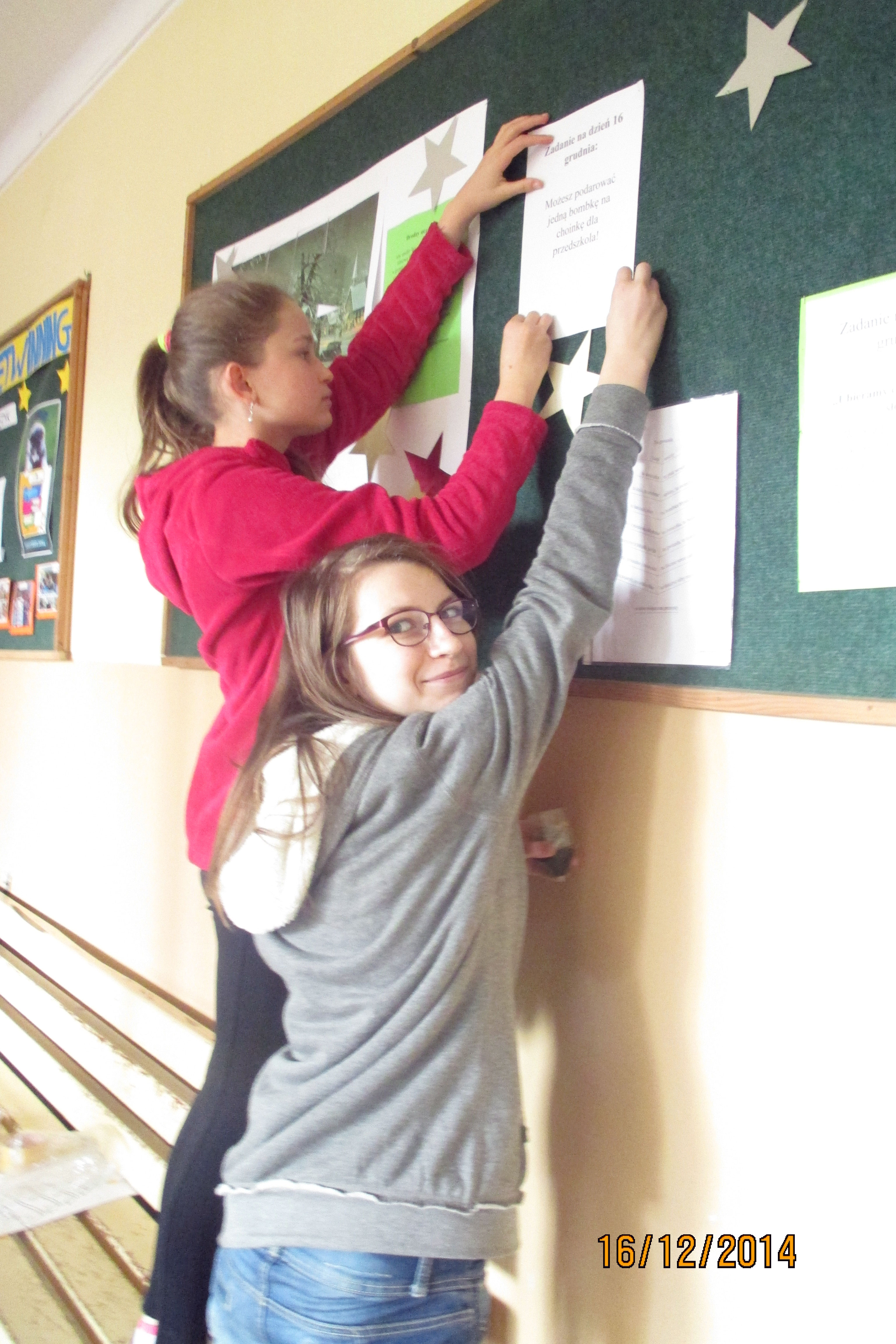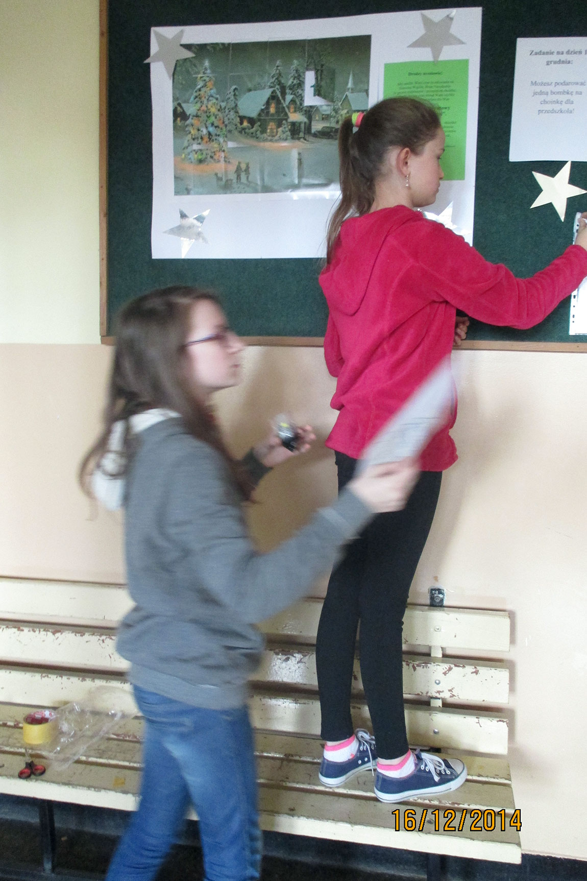 Przez 12 dni nauki, począwszy od 04. 12. do 19. 12. 2014 r. w kalendarzu umieszczałam zadania do wykonania dla uczniów. Były to analizy tekstów lirycznych, życzenia bożonarodzeniowe, słodkie niespodzianki, zadania plastyczne, krzyżówki itp.