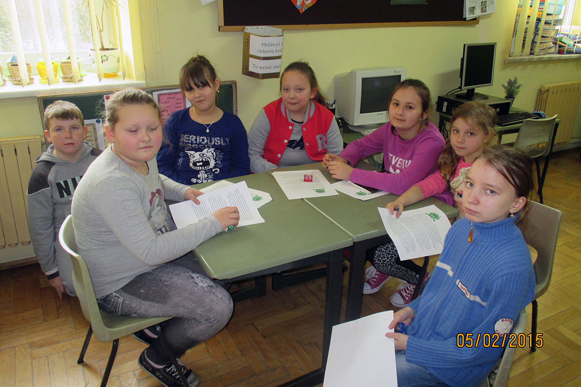 W naszej, młodszej społeczności szkolnej działa „Klub Bajkopisarzy”, nad którym opiekę przejęli uczniowie gimnazjum.
