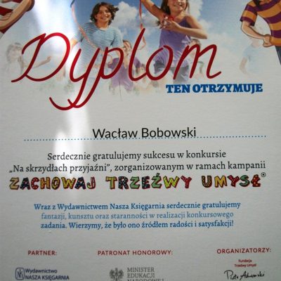 Wacław Bobowski kl. II Gimnazjum /kategoria – praca literacka i plastyczna/.