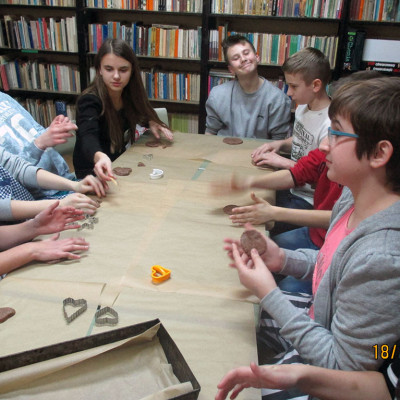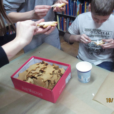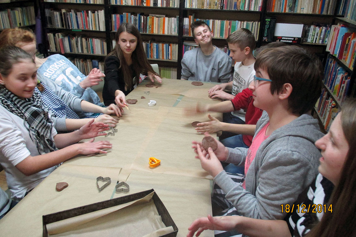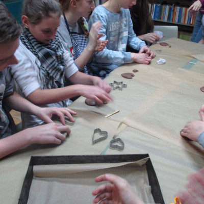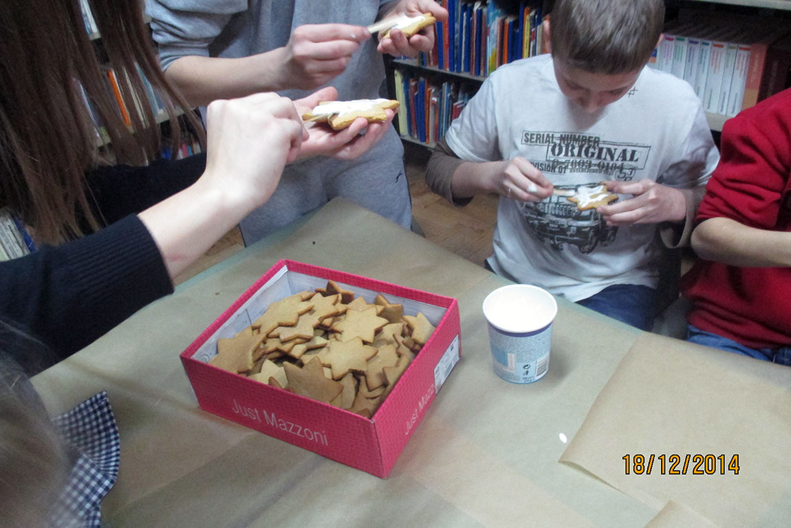 Zapachniało piernikami w Szkolnej Bibliotece. Odbyły się kolejne świąteczne warsztaty, podczas których czytelnicy upojeni książką Małgorzaty Musierowicz „Na Gwiazdkę” z piernikowego ciasta wykrawali motywy gwiazd, choinek, serduszek i aniołów.